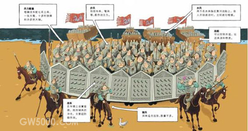 步兵:包括车兵、弩兵等,是作战的主力。水军:见战船骑兵:用来追击逃敌,数量不会太多。