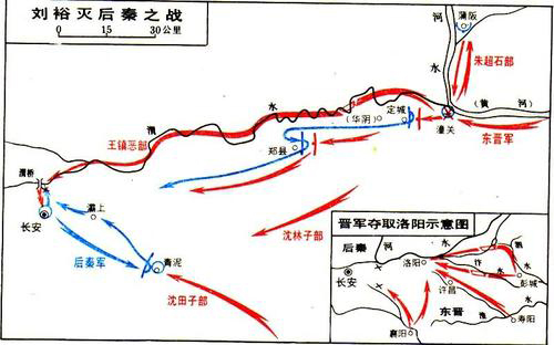 此战,刘裕善择战机,部署周密,军事政治处置得当;攻长安时以偏师入武关,派水军溯渭水西进,配合主力,水陆夹击,终获胜利。417年,后秦灭亡,后秦皇帝姚泓被刘裕所俘虏,后被押送到建康斩首,时年30岁。