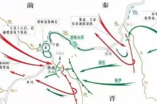 苻融在战场上不幸阵亡,苻坚一个人骑着马狼狈逃窜,秦兵兵败如山倒,还诞生了几个成语:“草木皆兵”,“风声鹤唳”。