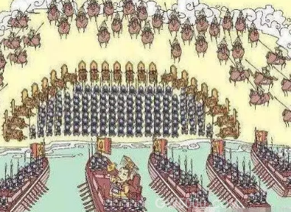 战船:用来控制水道、运送兵源和作战物资,一但战事不利,还可以接应阵中的晋军。