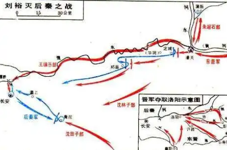 东晋义熙十二年(后秦永和元年,416)八月至次年八月,太尉刘裕率东晋军攻克长安(今西安西北)灭亡后秦,史称“刘裕灭后秦之战”。此战,刘裕善择战机,部署周密,军事政治处置得当;攻长安时以偏师入武关,派水军溯渭水西进,配合主力,水陆夹击,终获胜利。417年,后秦灭亡,后秦皇帝姚泓被刘裕所俘虏,后被押送到建康斩首,时年30岁。接下来历史资料小编就给大家带来相关介绍,希望能对大家有所帮助。