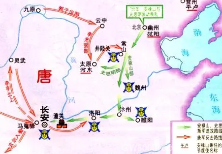 此后,唐玄宗又火速启用老将哥舒翰,从边境调回了二十万精锐边军,供哥舒翰统领,死守潼关。与此同时,唐军名将郭子仪、李光弼等人,又率领朔方军镇的精锐,从山西方向进攻,试图截断叛军主力和范阳方向的联系。随着战争时间越来越长,唐军方面死守潼关,叛军久攻不下,后方却几乎被郭子仪率兵攻破老巢,形势已经处在了十分不利的态势。安禄山叛军被彻底平定,似乎已经只是一个时间问题而已了。