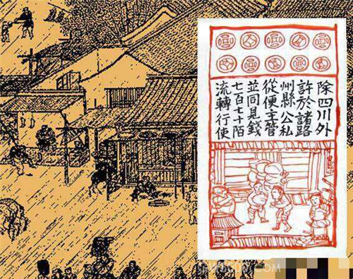 “飞钱”出现于唐代中期,当时商人外出经商带上大量铜钱有诸多不便,便先到官方开具一张凭证,上面记载着地方和钱币的数目,之后持凭证去异地提款购货。