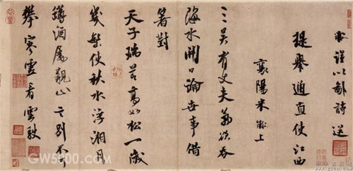 他所书的《寒食诗帖》被誉为“天下第三行书”,能有这样的作品传世,可以说是平生无憾了。因而在“尚意”书风中,将苏轼排在第一应该是无可争议的。但如果要论及行书成就对后世的影响,则首推米芾。米芾在“宋四家”中年龄最小,影响却最大,连董其昌都说米芾“当在东坡之上”。