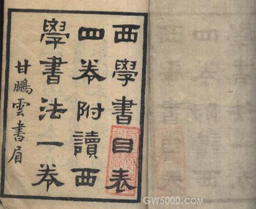 《西学书目表》。梁启超编。为了介绍西学,提倡变法维新,清光绪二十二年他在《时务报》上刊登《西学书目表》。著录译书约300种,分西学、西政、杂类3大。《西学书目表》中介绍的图书和编制这一目录的方法,在当时都有积极的意义。该书出版后在学术界引起很大反响,继作者不断。