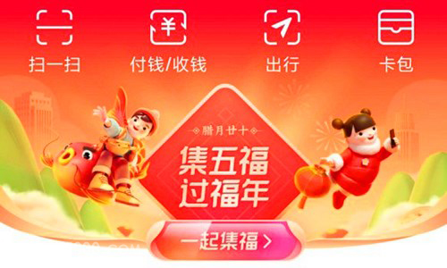 “集五福“活动将在2月11日(除夕)晚10点18分开奖,集齐的用户可以共同拼手气瓜分5亿元现金。