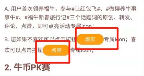 使用最新版本手机微博客户端点击【这里】,在页面有【熄灭】按钮,点击后即可熄灭icon。如熄灭后想要再次点亮,可点击【点亮】进行点亮