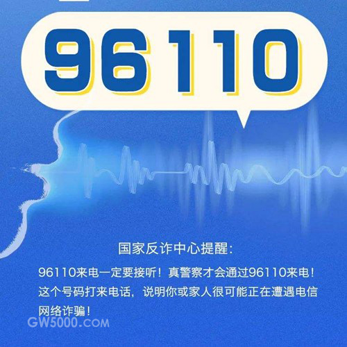 96110是反电信网络诈骗专用号码,专门用于对群众的预警劝阻和防范宣传等工作。