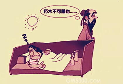 宰予白天睡大觉。孔子说:“腐朽了的木头是不能雕刻器物的,腐秽的墙壁是不能够粉刷的。”