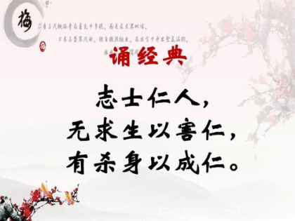 孔子说:“志士仁人,不会为了求生损害仁,却能牺牲生命去成就仁。”