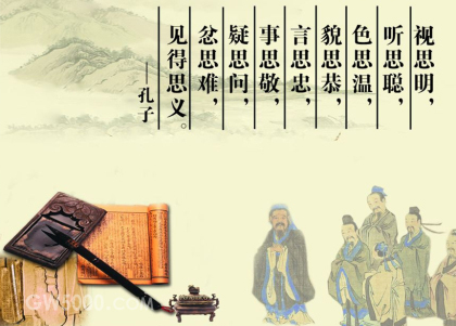 孔子说:“君子有九种思考:看的时候要思考看明白了没,听的时要思考听清楚了没,待人接物时,要想想脸色是否温和,样貌是否恭敬,说话时要想想是否忠实,做事时要想想是否严肃认真,有疑难时要想着询问,气愤发怒时要想想可能产生的后患,看见可得的要想想是否合于义。”