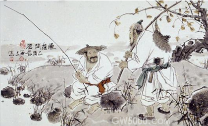 颜渊掉转车头,子路递过拉着上车的绳索,孔子看定渔父离去的方向头也不回,直到水波平定,听不见桨声方才登上车子。