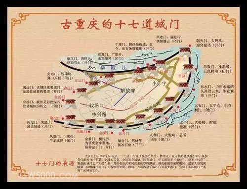 其他城门虽已消失,但渝中尚有很多地名仍以城门命名,如朝天门、千厮门、临江门、储奇门、金紫门,还有与城门相关的地名如金汤街,凤凰台等,可见重庆的城门已然给这座城市留下了深深的烙印。