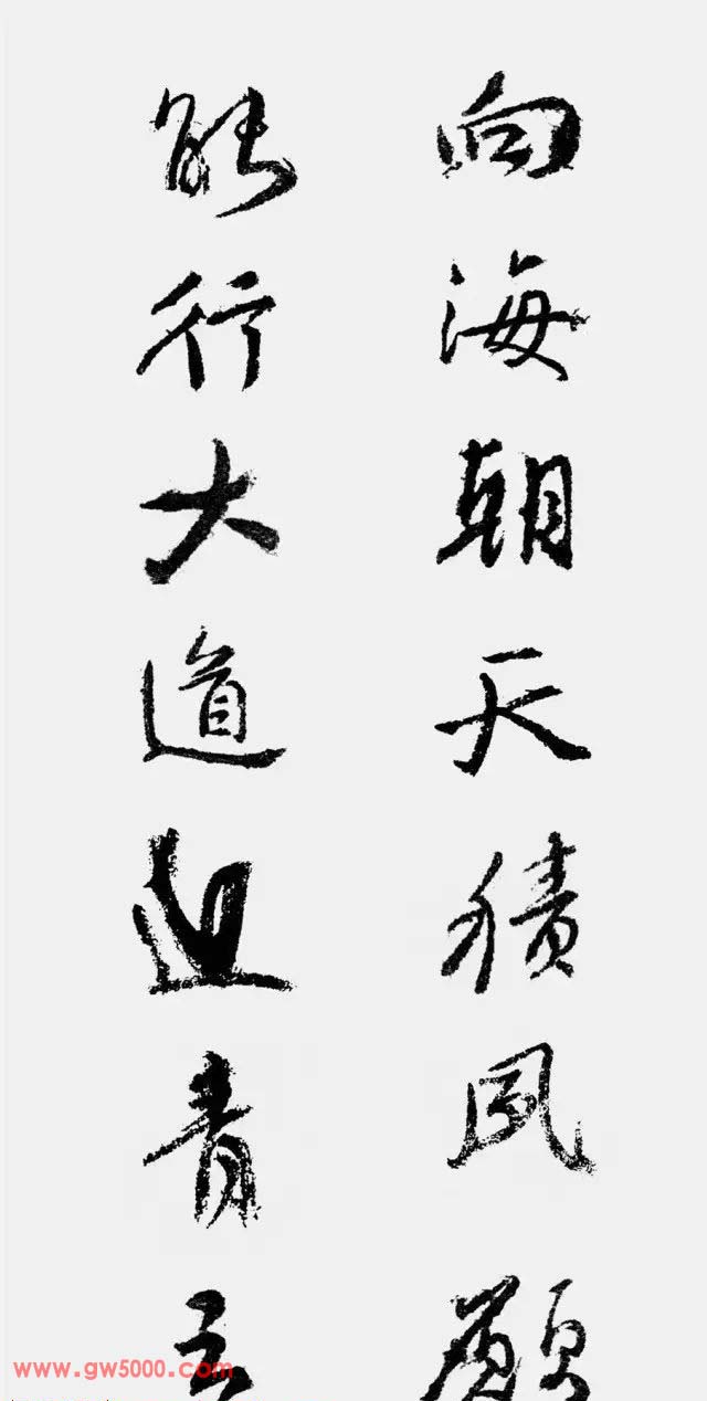 颜真卿行书集联,用字来源:《祭侄稿》、《祭伯父稿》和《争座帖》,此三帖中锋运转,沉着凛然,不取侧锋之妍,充满篆籀气。