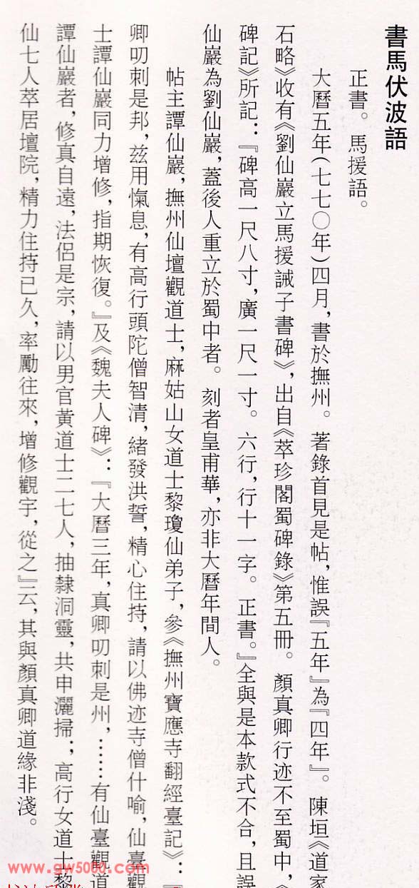 释文:马伏波语云闻人之过,如闻父母之名耳,可闻而口不可道也。有唐大历三年(768年)夏四月,金紫光禄大夫行抚州刺史上柱国鲁郡开国公颜真卿书。白云堂道士谭仙岩立。