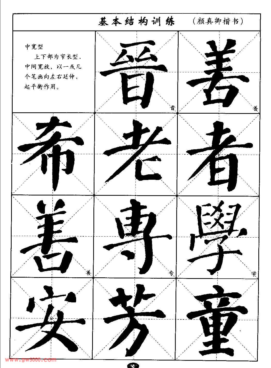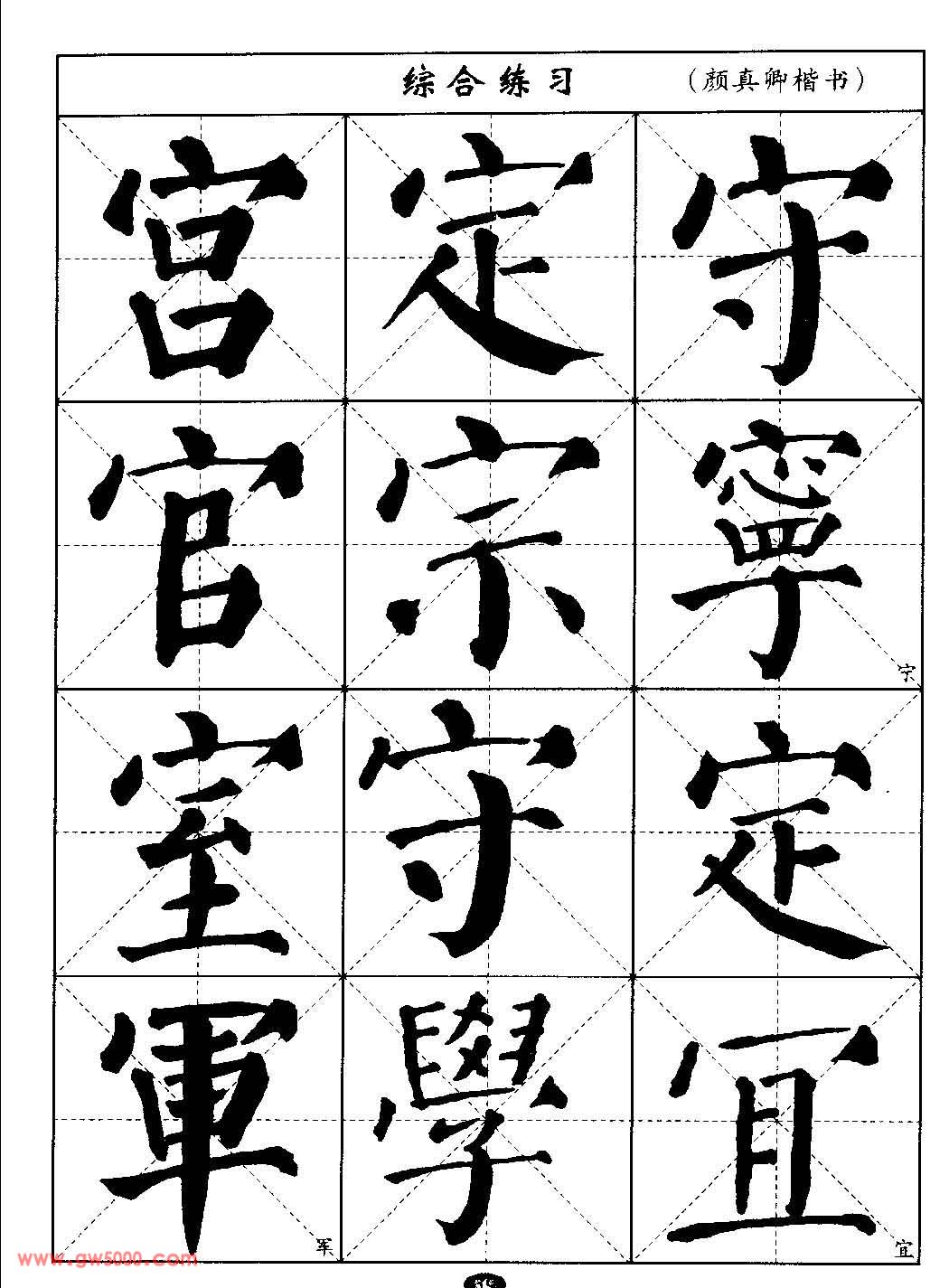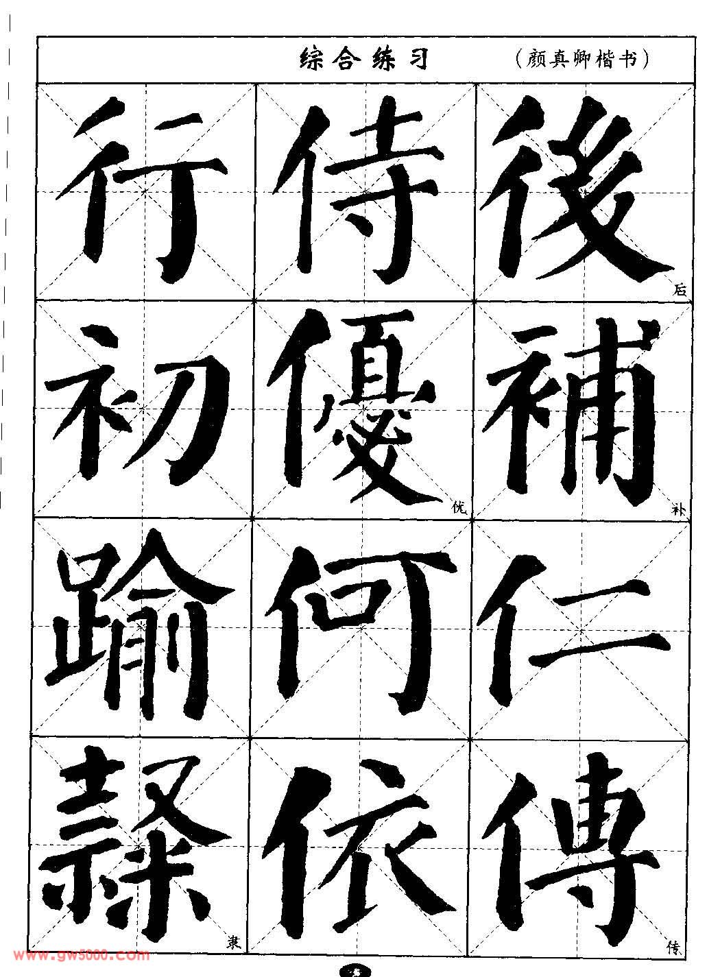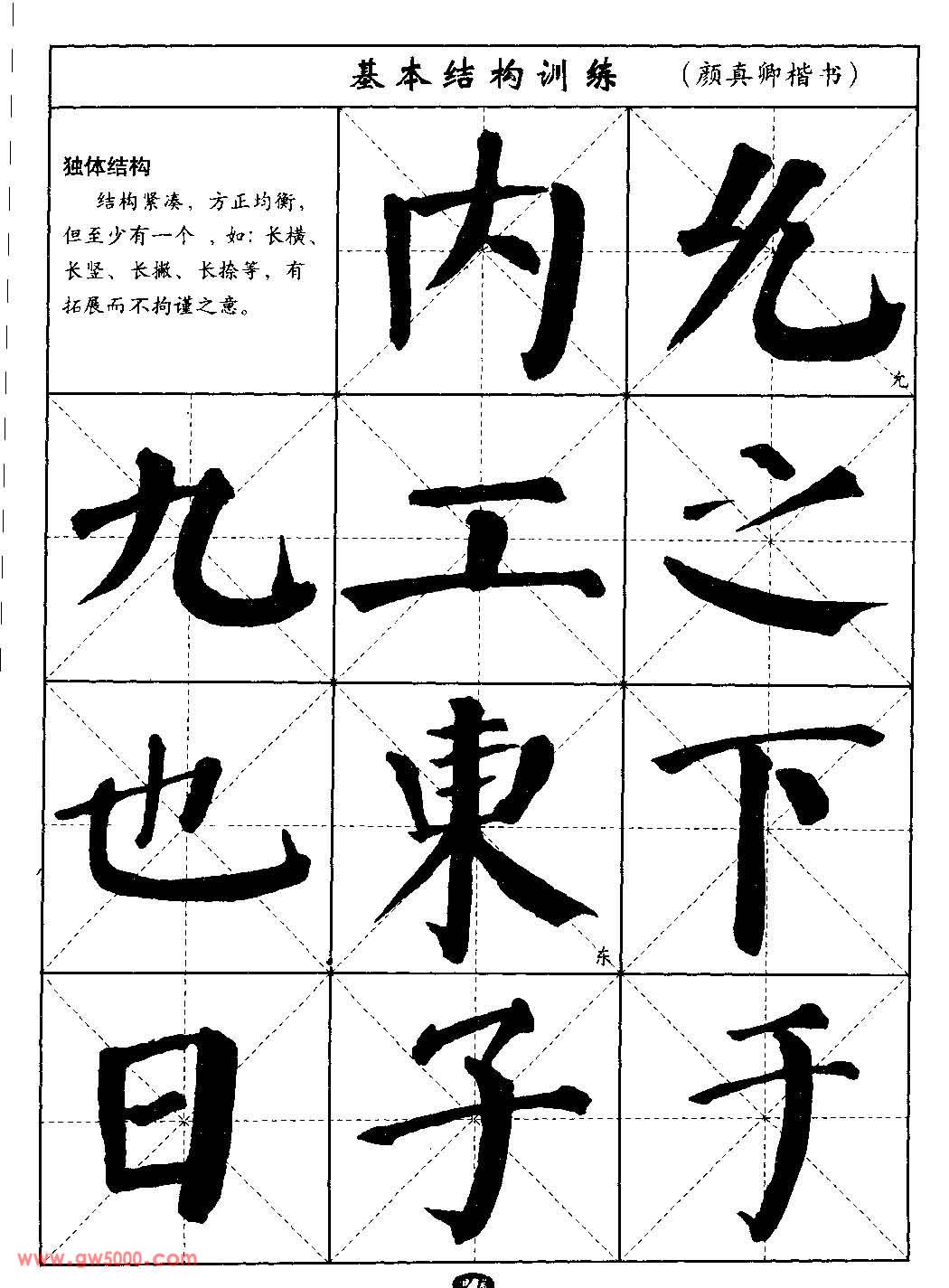 》为颜真卿60岁时所书,本帖主要内容:基本笔画训练、基本结构训练和综合练习。