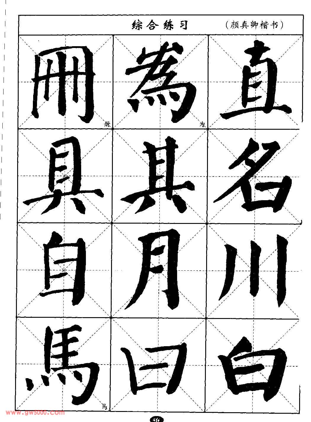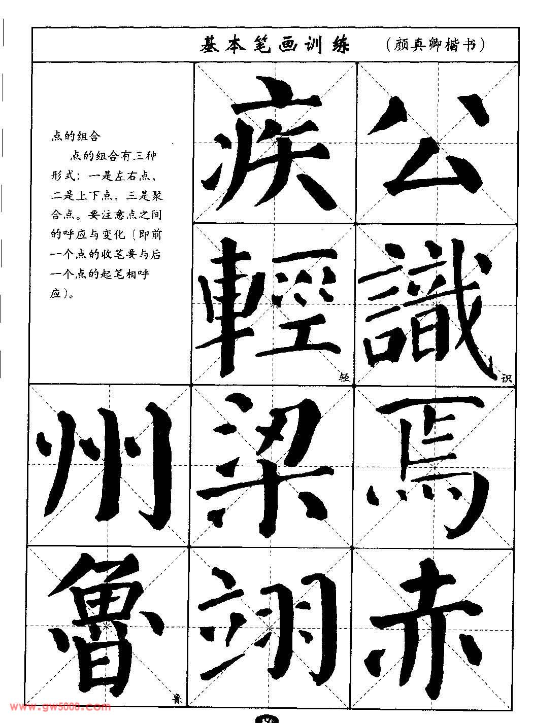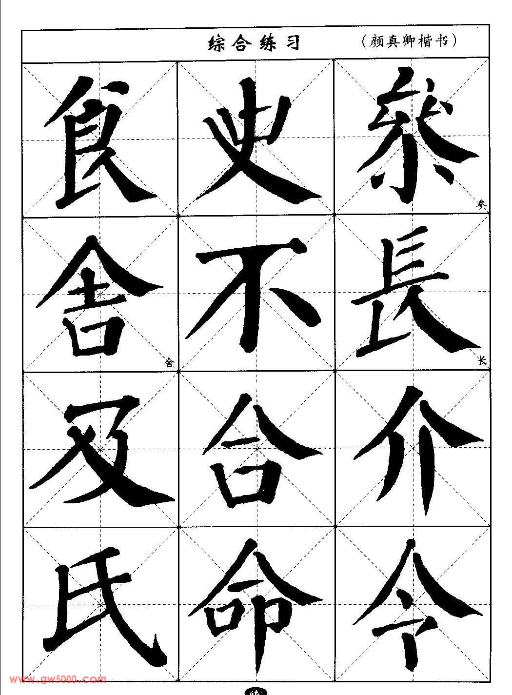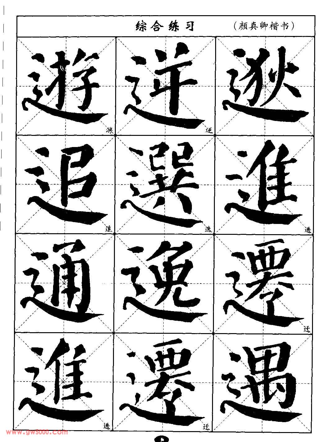 》为颜真卿60岁时所书,本帖主要内容:基本笔画训练、基本结构训练和综合练习。