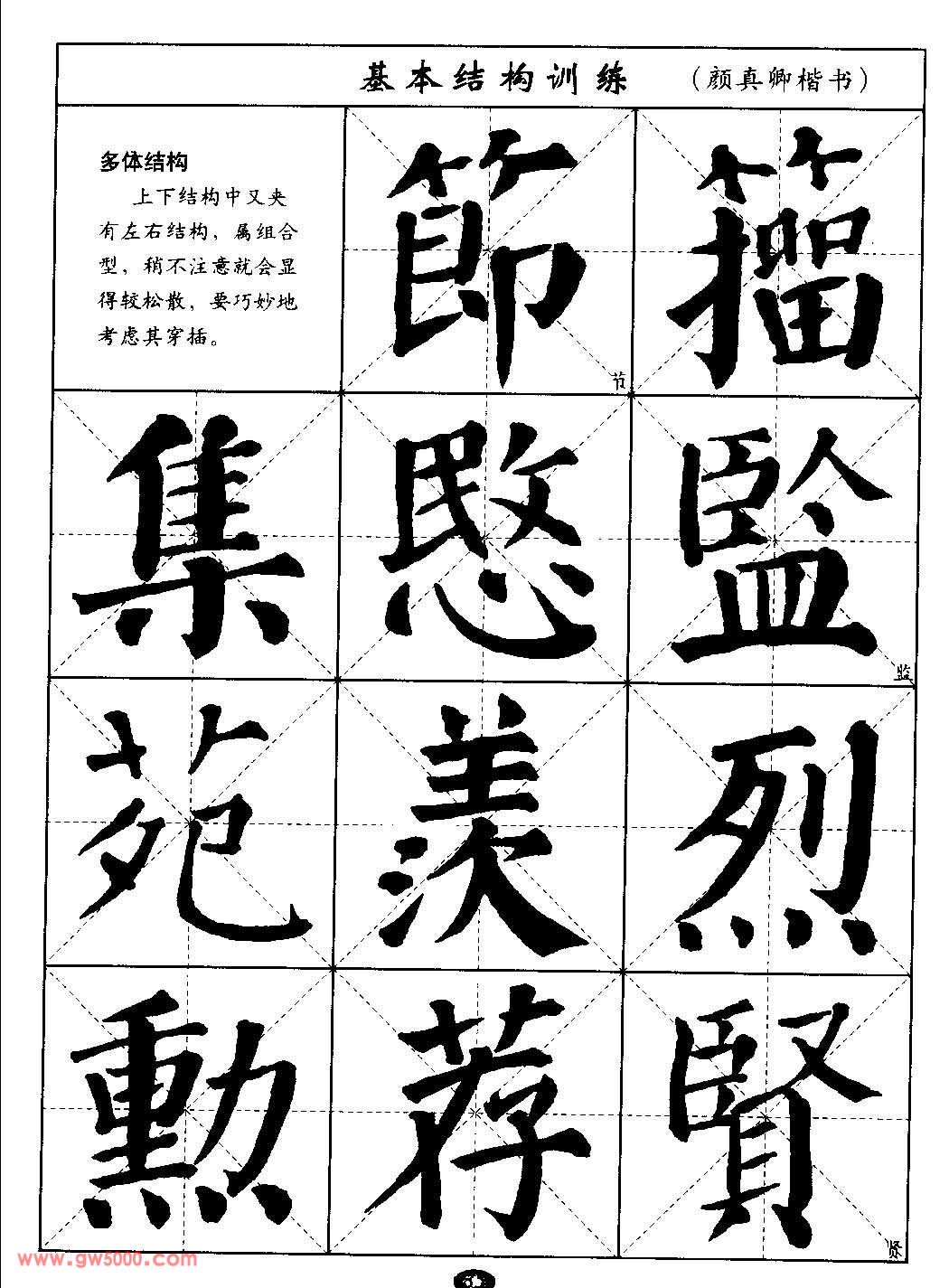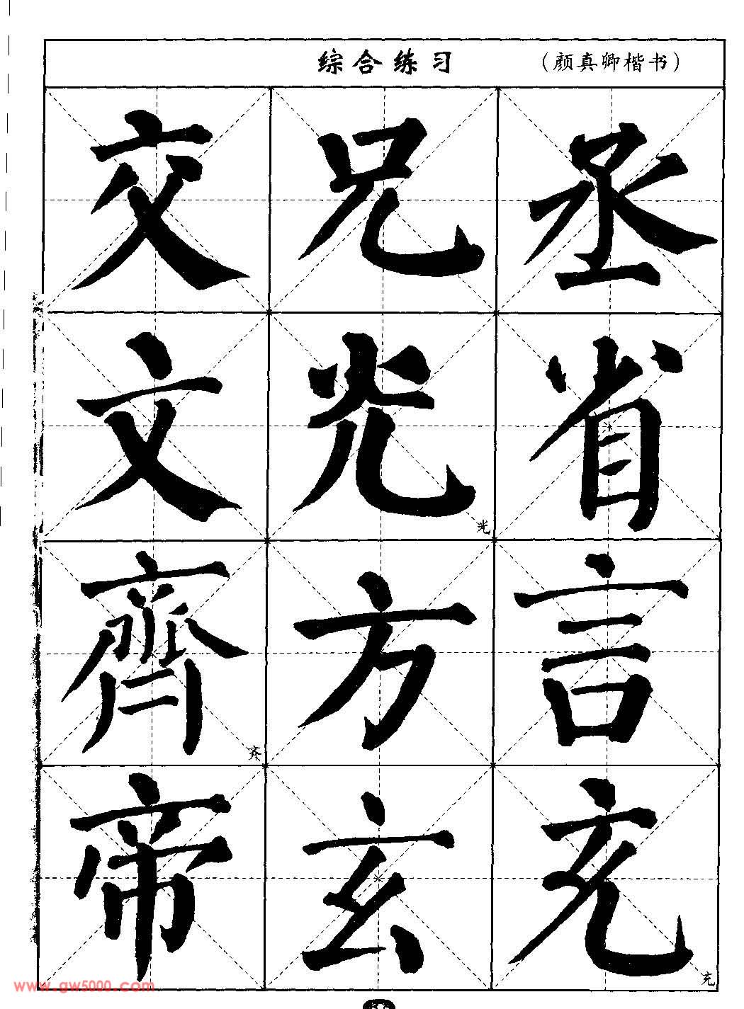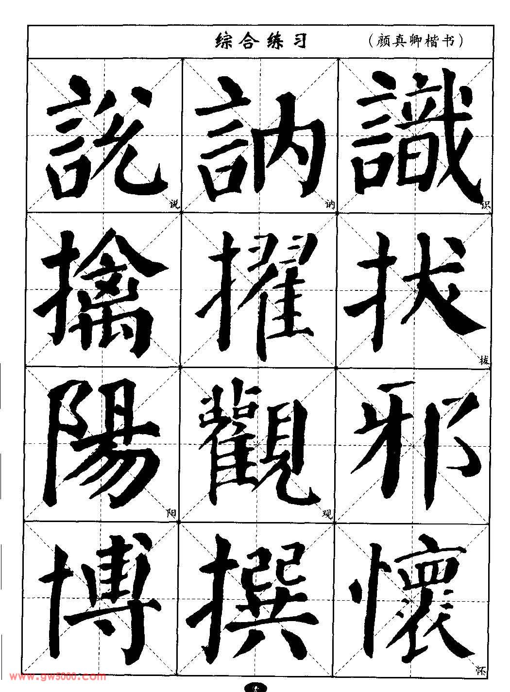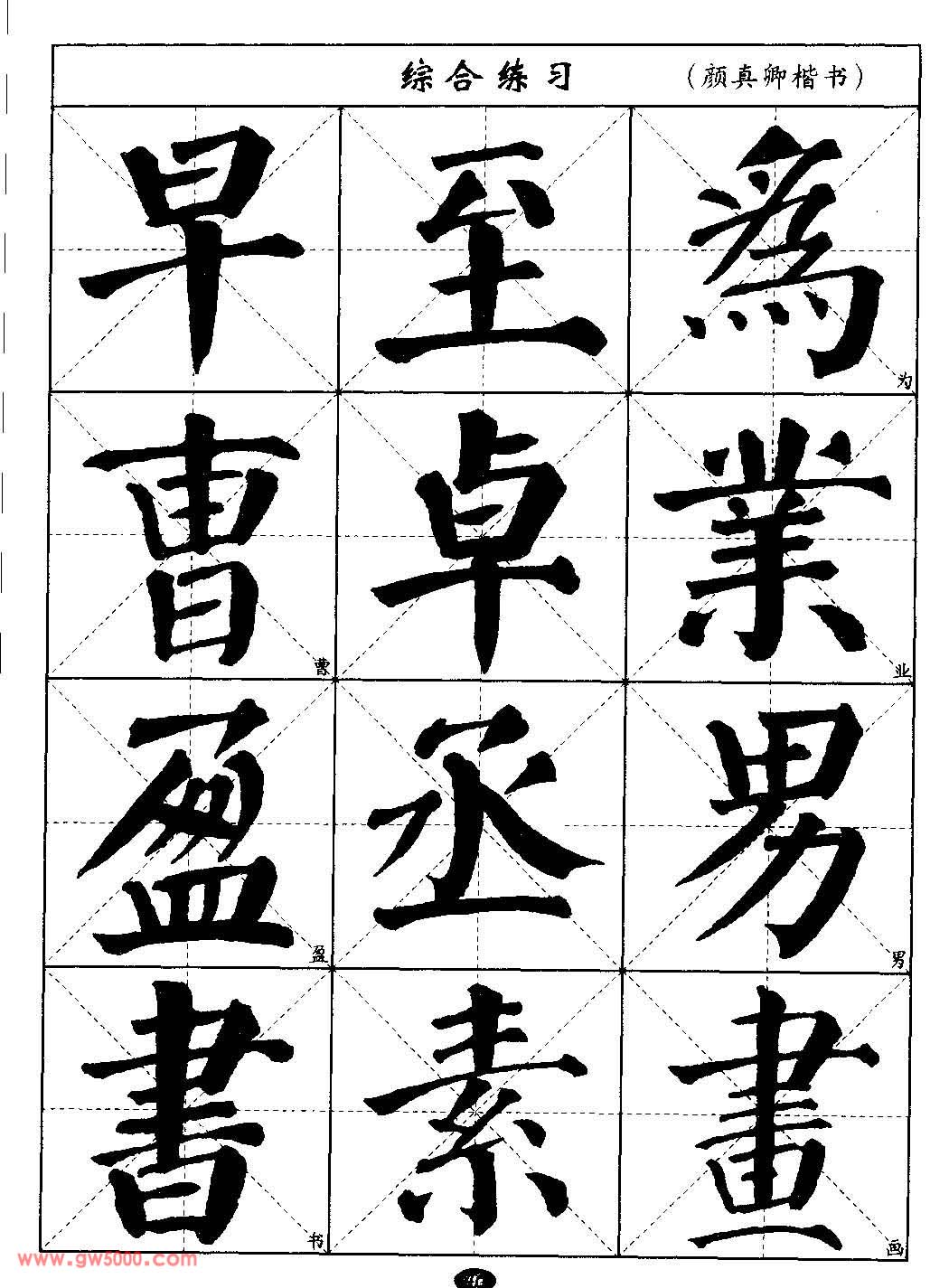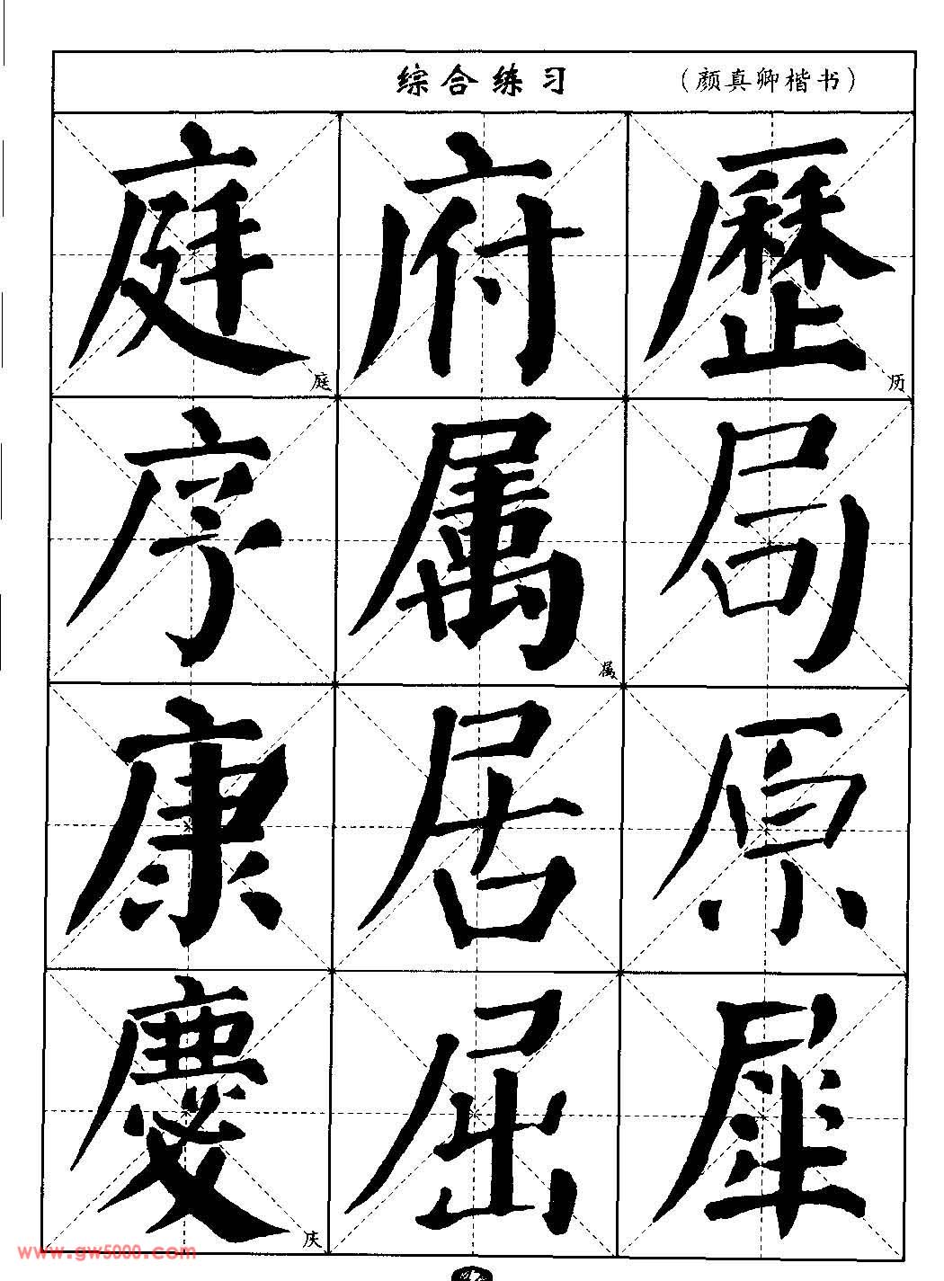 》为颜真卿60岁时所书,本帖主要内容:基本笔画训练、基本结构训练和综合练习。