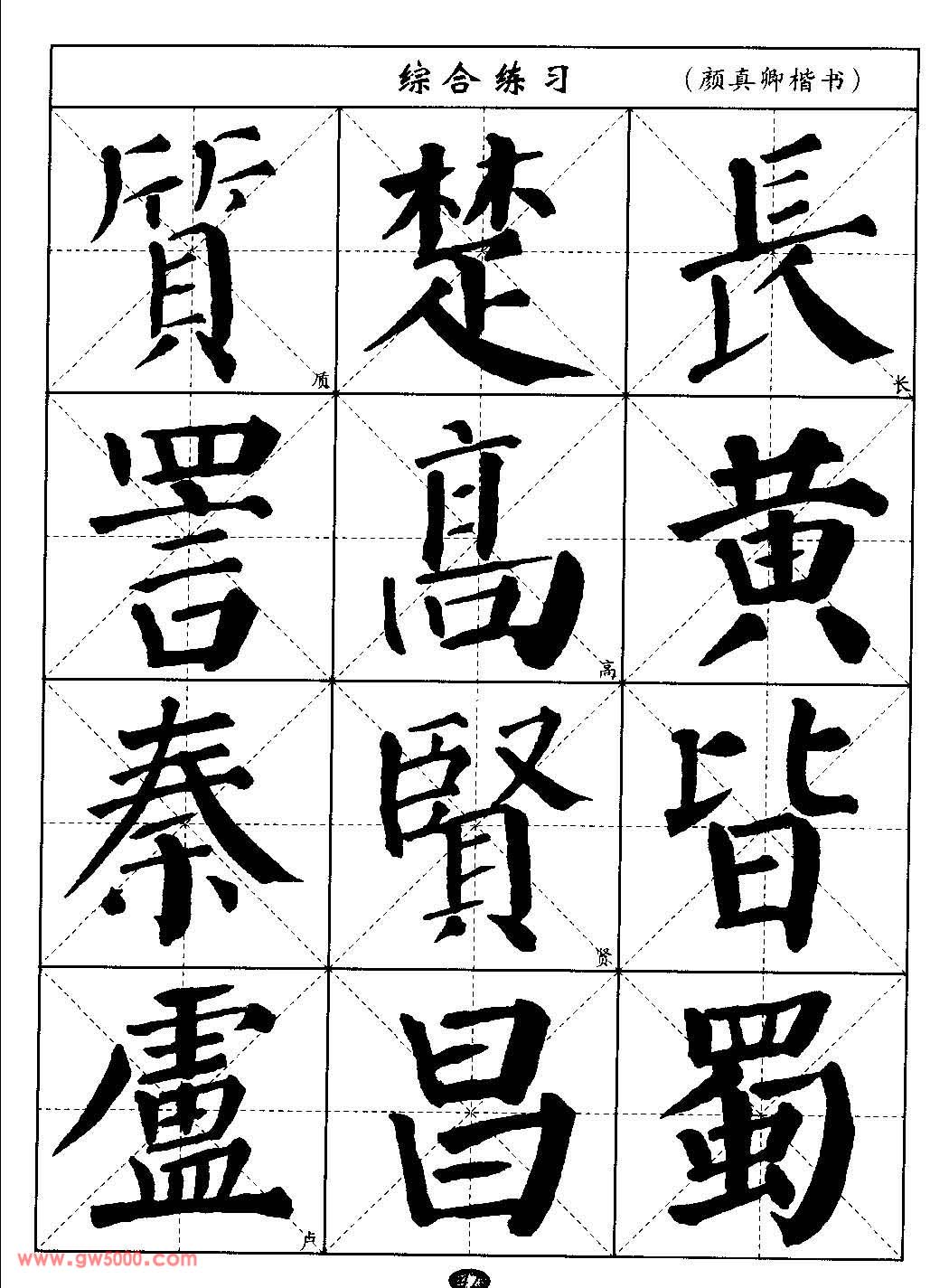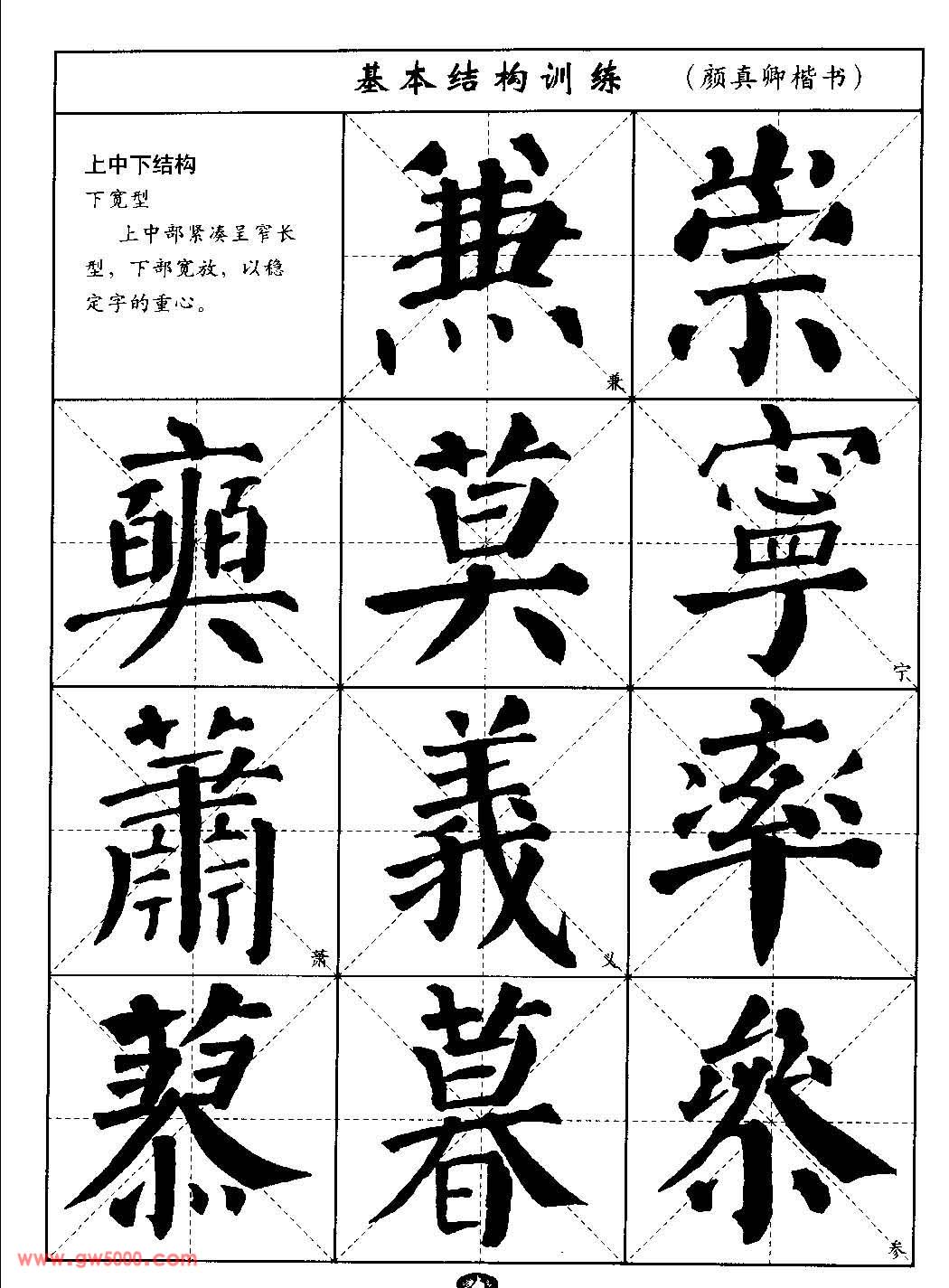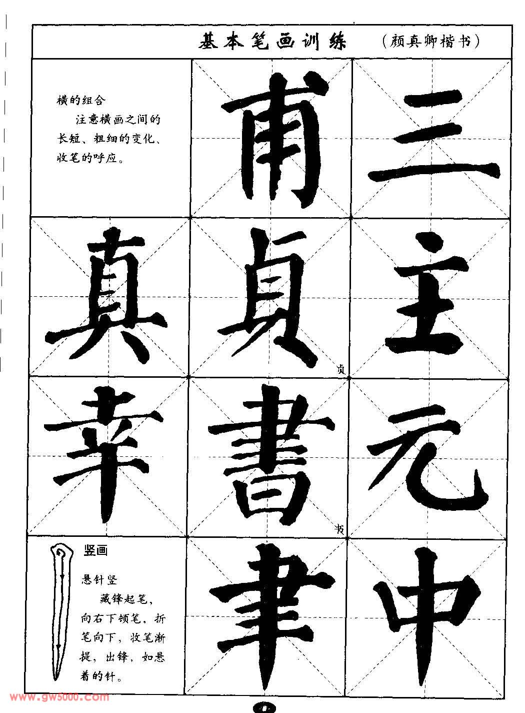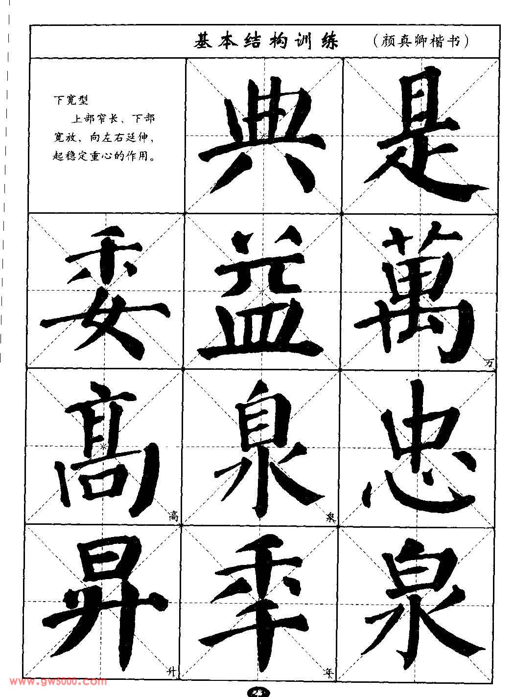 》为颜真卿60岁时所书,本帖主要内容:基本笔画训练、基本结构训练和综合练习。