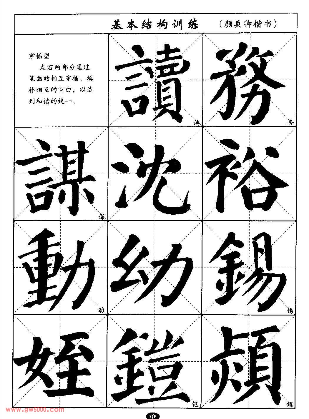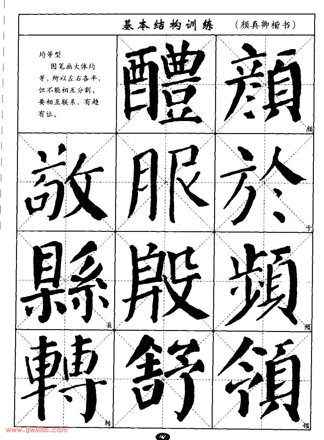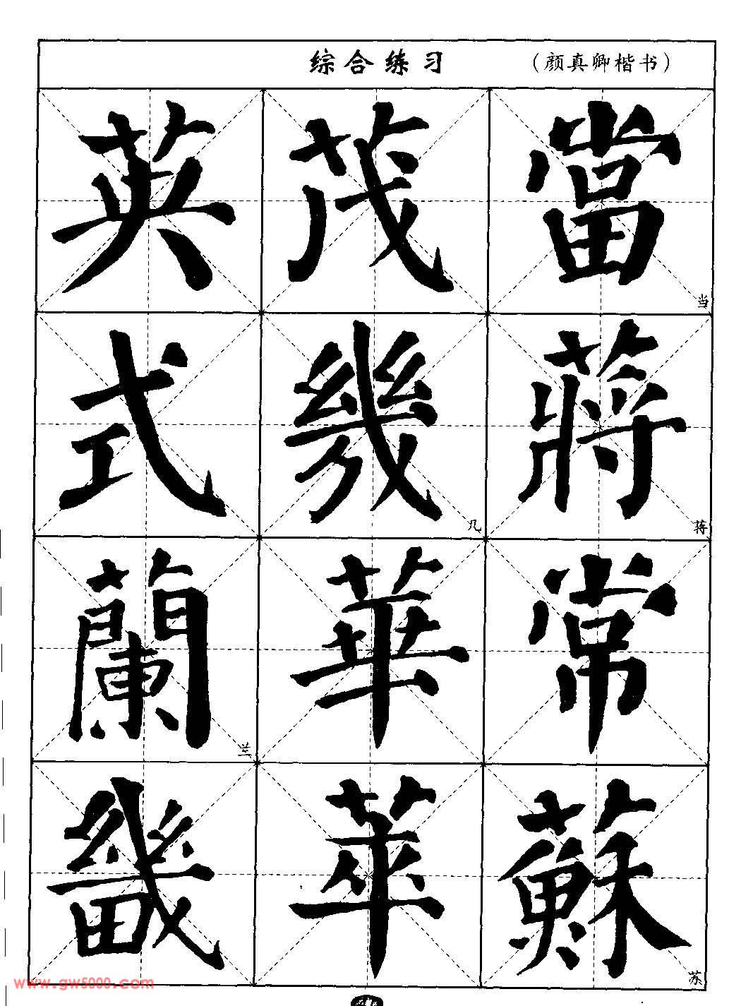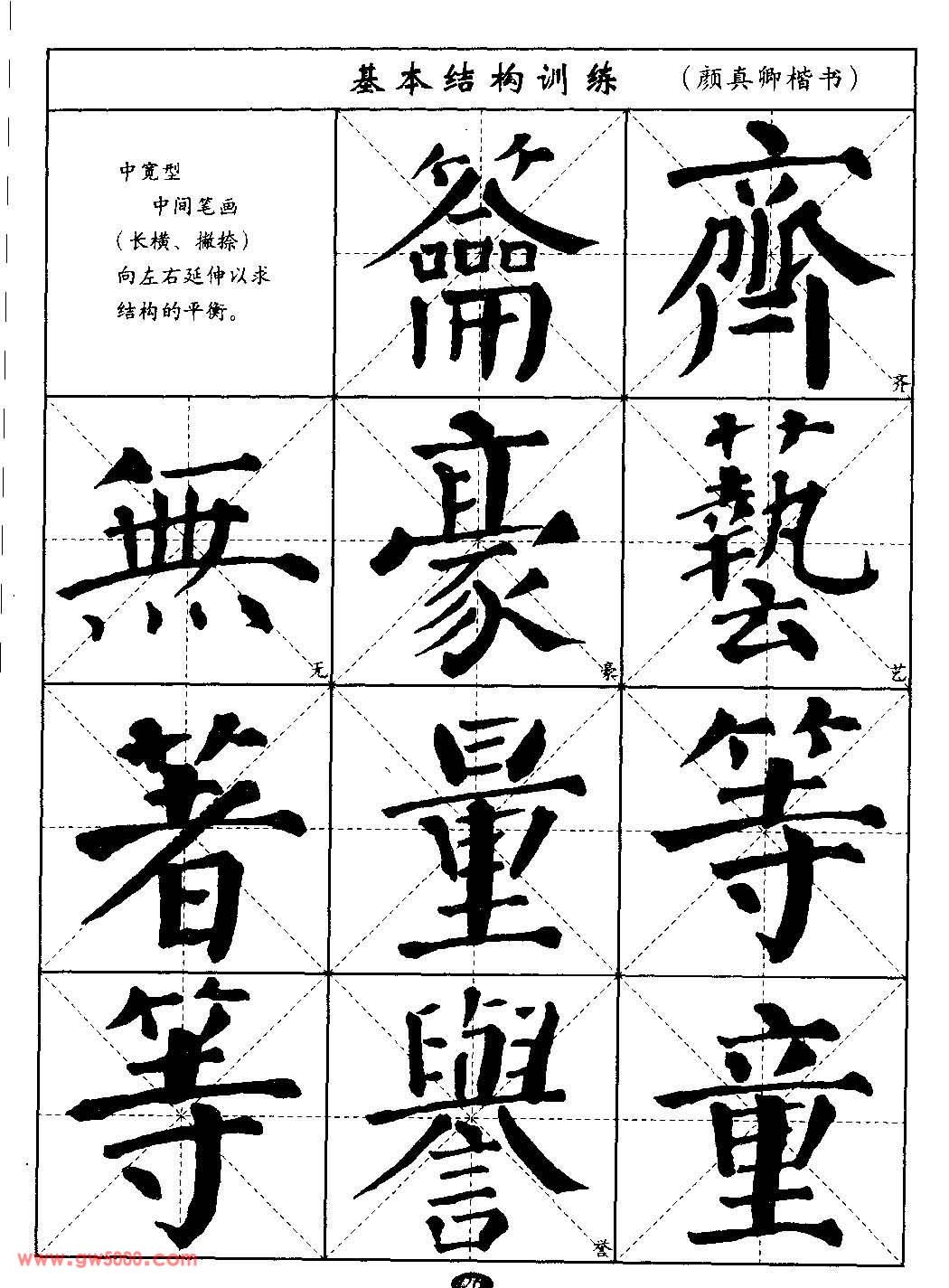 》为颜真卿60岁时所书,本帖主要内容:基本笔画训练、基本结构训练和综合练习。