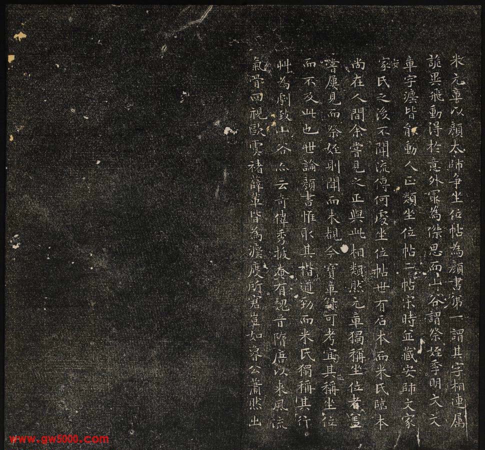 元章独称《座位帖》,盖尝屡见,而《祭侄》则闻而未睹,今《宝章录》可考,宜其并称《座位》而不及此也。世论颜书惟取其楷法遒劲,而米氏独称其行草,为劇致。山谷亦云,奇伟秀拔,奄有魏晋隋唐以来风流气骨,回视欧、虞、禇、薛辈,皆为法度所窘,岂如鲁公萧然出于绳墨之外而卒与之合哉。盖亦取其行书之妙也。况此二帖皆一时藁草,未尝用意,故天真烂漫出于寻常畦径之外。米氏所谓忠义愤发,顿挫鬱屈,意不在字者也。