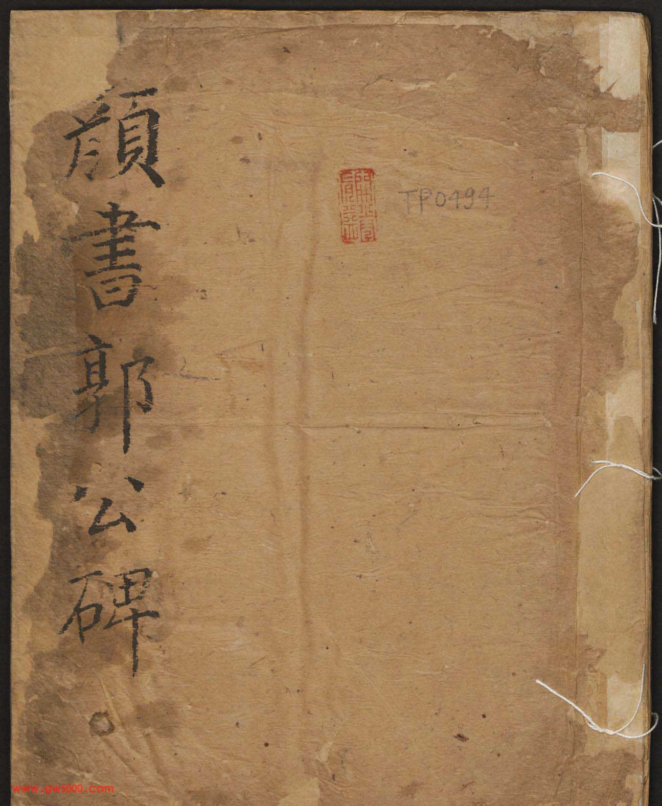 北京圖書館藏中國歷代石刻拓本匯編: 顔真卿撰并書郭敬之家廟碑正書原刻. 西安, 唐廣德2年 [764]11月21日, 毛裝剪貼, 墨紙尺寸: 27 x 17.5 cm. 淸拓本. 書前襯葉有"堀越文庫"(Horikoshi bunko)印記.