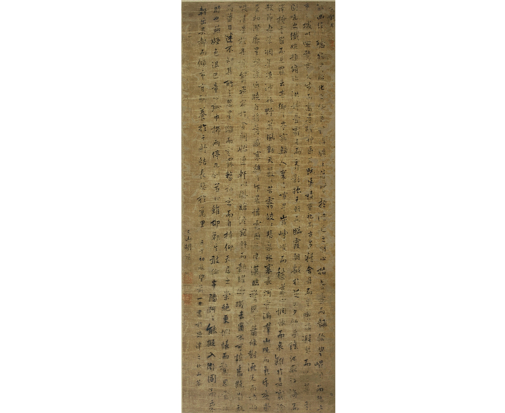此轴书法结构谨严,用笔挺健,笔力沉实,字法缜密,书体方整,洒脱不俗。款题:“壬午初秋望前一日书於延津之北山菴。三山胡靖”。钤“胡靖之印”朱文印及“献卿印”白文印。1959年陈嘉庚先生征集,现收藏于华侨博物院。