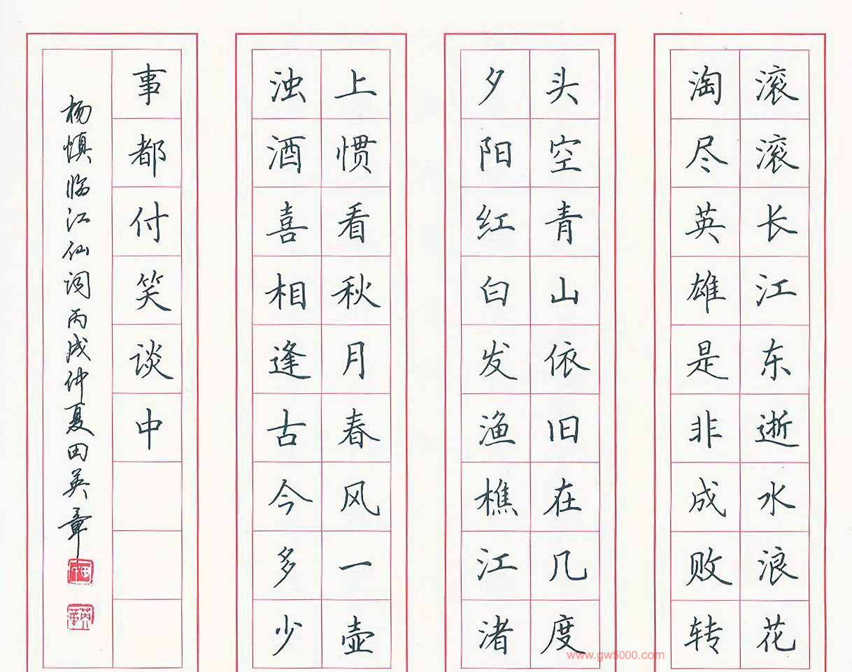 田英章毛笔楷书《三国演义开篇词》米字格版
