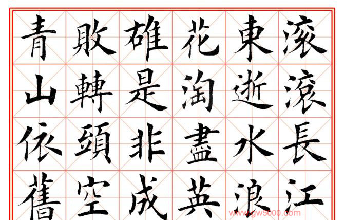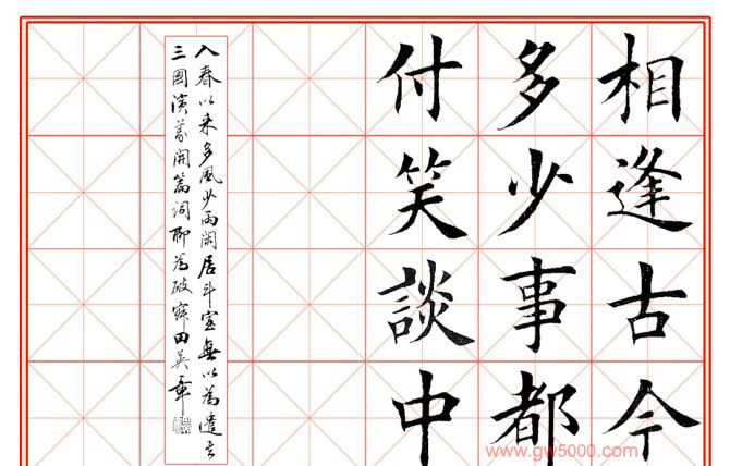 田英章毛笔楷书《三国演义开篇词》米字格版;书法图片13张