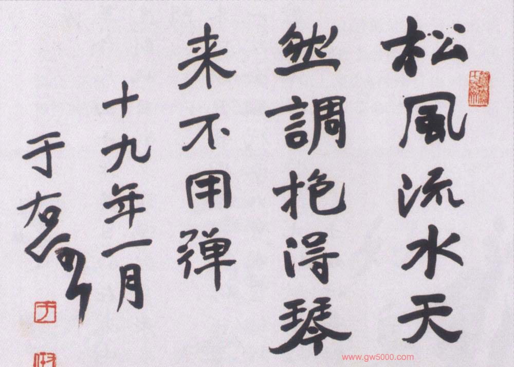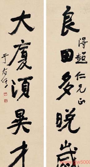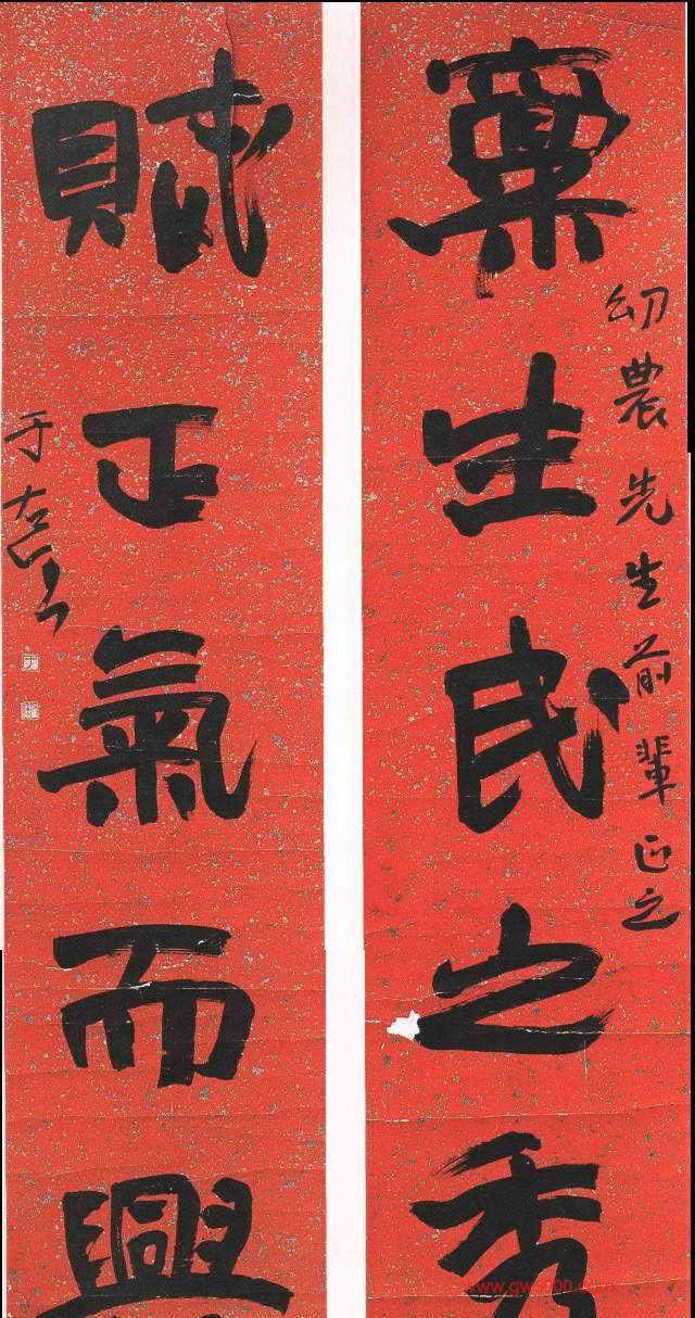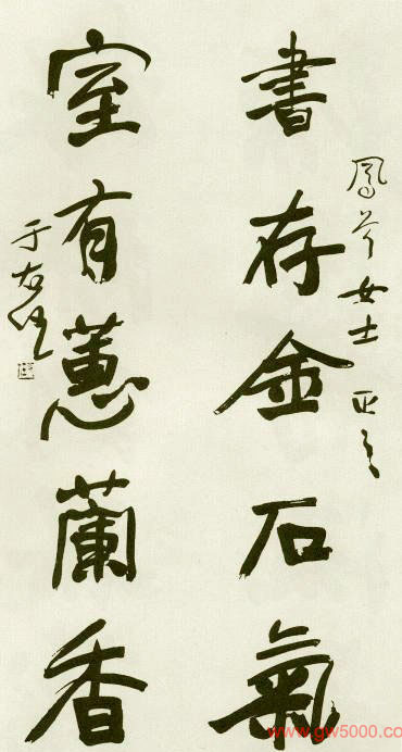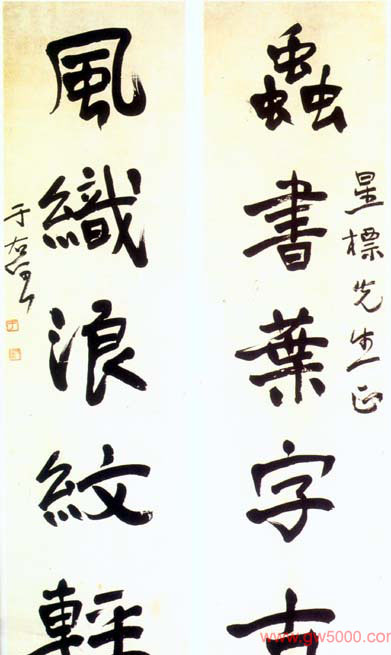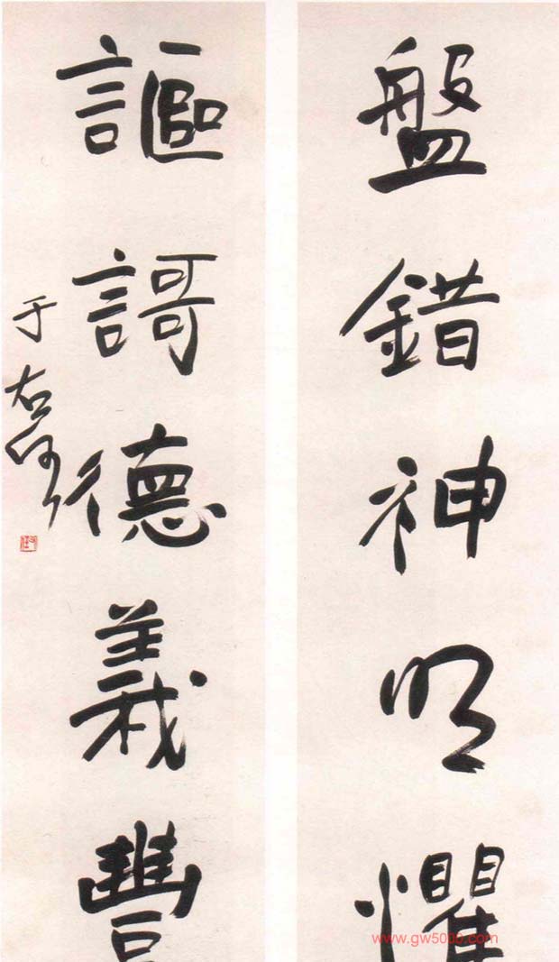 自鸦片战争以来,清廷腐败,国力渐衰,中华民族受到列强侵略。于先生所以喜欢魏碑,是因为魏碑有“尚武”精神,有粗犷豪放之气。他怀有一种忧国忧民的意识,以图唤起中华民族的觉醒。这从他写的一首诗中可以得到反映。“朝临石门铭,暮写二十品,辛苦集为联,夜夜泪湿枕。”否则,如果只是临习书法,是无须“夜夜泪湿枕”的。他曾说过,“有志者应以造福人类为己任,诗文书法,皆余事耳。然余事亦须卓然自立。学古人而不为古人所限。”他正是这样,博撷约取,以个人审美原则取舍,形成了自己的行楷书,得以在千载书史上“卓然自立”。
