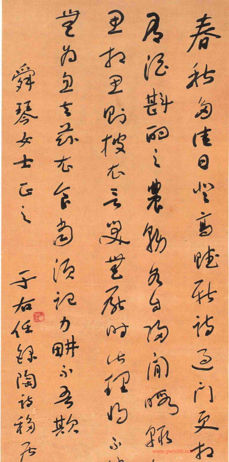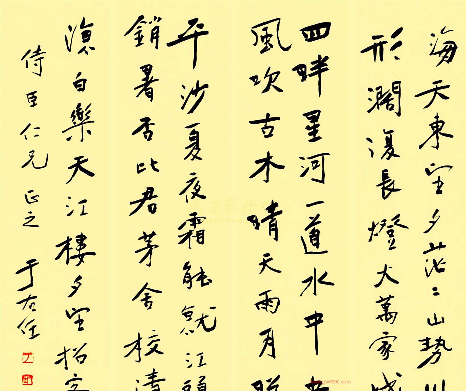 于右任早年加入同盟会,跟随孙中山先生革命,是中国国民党元老,是近代民主革命先驱。他在诗歌和书法上造诣颇深,少年时代就被称为西北奇才,是沉雄博大的一代诗人和书法大师,作品在民间广为流传。于先生的书法艺术特点,是在北魏楷书中融入了行书和隶书的笔意,可谓融碑帖于一炉,如行云流水。