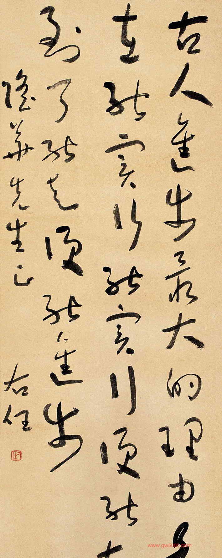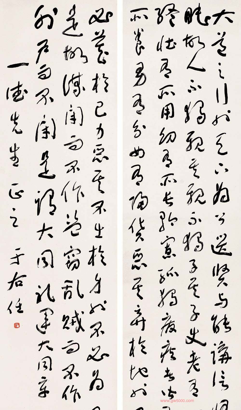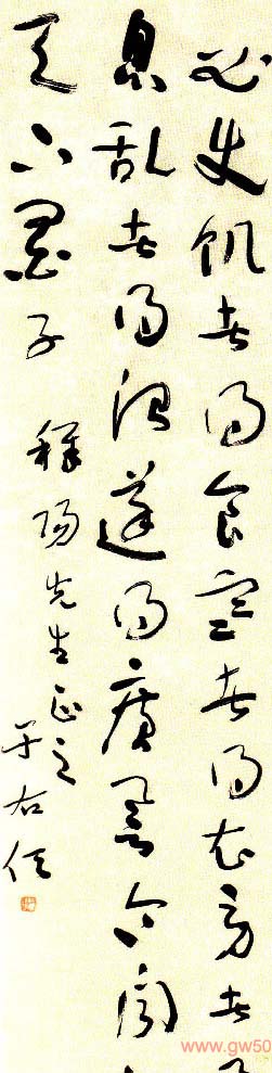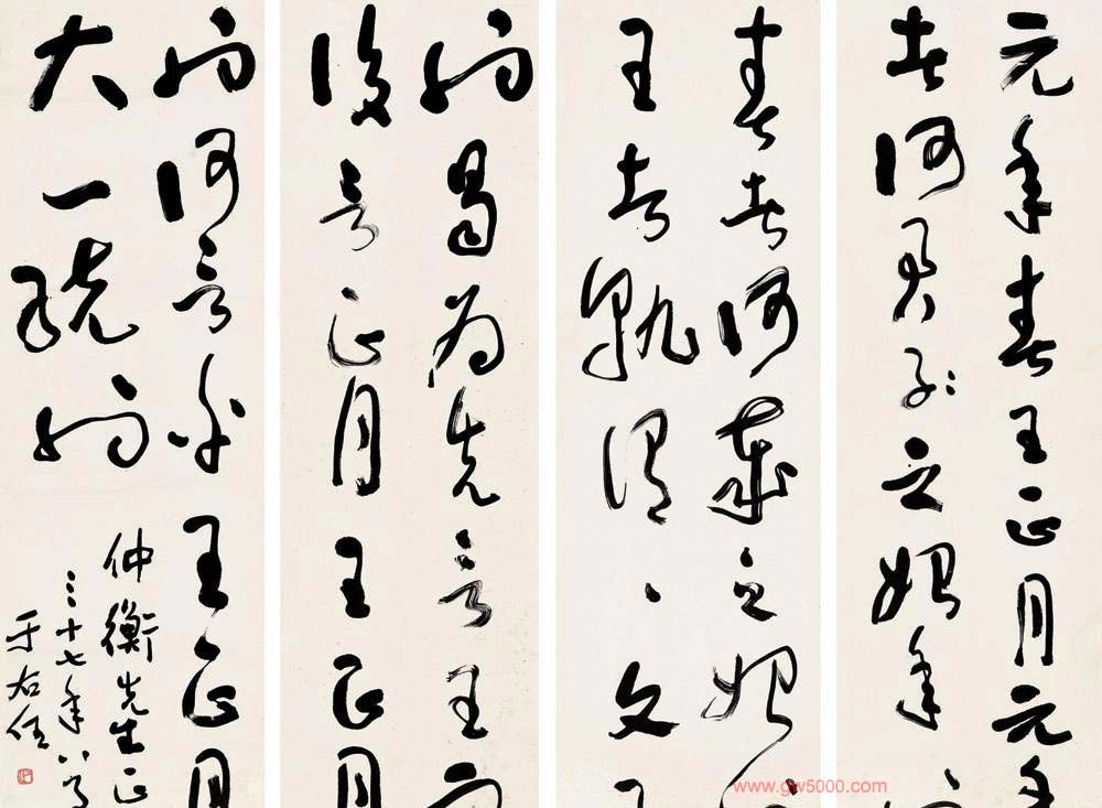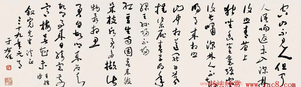 于先生习书从赵孟頫入,后改攻北碑,精研六朝碑版,在此基础上将篆、隶、草法入行楷,独辟蹊径,中年变法,专攻草书,参以魏碑笔意,自成一家。