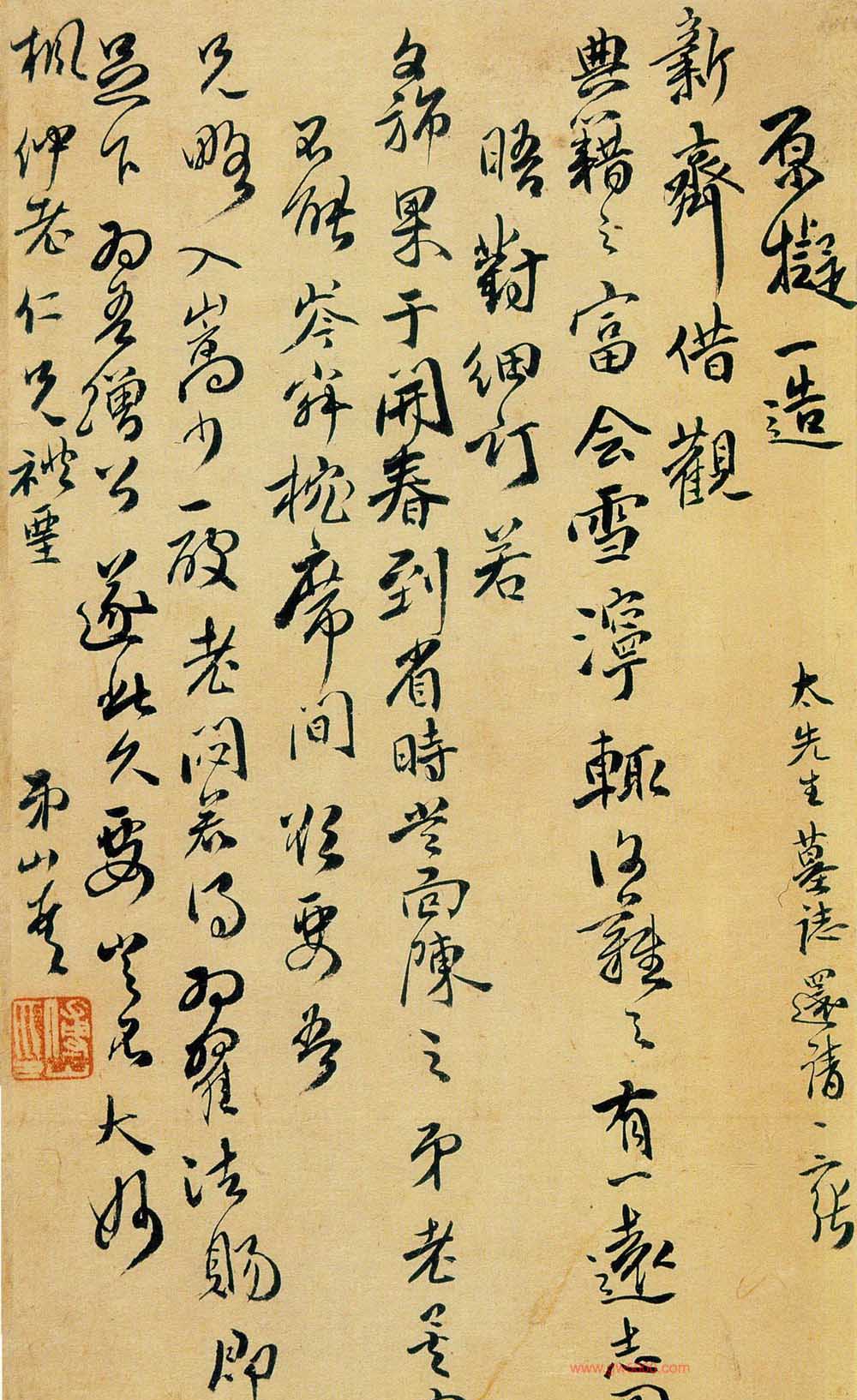 傅山(1607-1684),初名鼎臣,后改名山。字青主,号公之它、丹崖翁、真山、侨黄等。阳曲(今属山西)人,祖籍大同。明亡后曾出家为道士,故人称“朱衣道人”。有《霜红龛集》等传世。他是一位很有气节的人,前半生全力反清,晚年隐而不仕清,成为历史上少有的气节高贞之人。他主张“作字先作人,人奇字自古”,又针对当时赵、董流弊一味甜熟之风,提出“宁拙毋巧,宁丑毋媚,宁支离毋轻滑,宁直率毋安排”等著名书法观,反映了他的卓尔不群,出时风之表的高格。他的草书雄强奇崛,下笔如龙蛇飞舞,苍鹰盘旋,极自由超拔。他曾自言比于王羲之,是“龙跃似之,虎卧不足”,说的就是自认为动处似王羲之,静处尚有不足。他的小字精严,楷法颜真卿,而归之于钟繇,写得极精到高古。