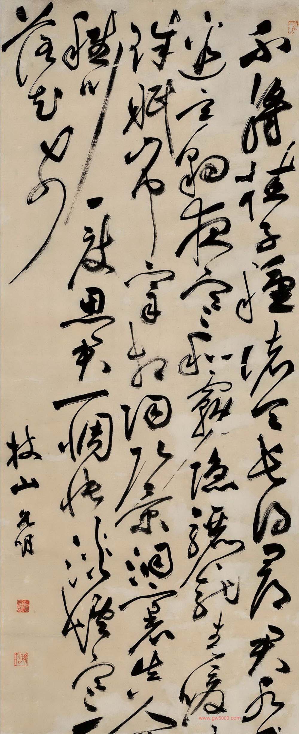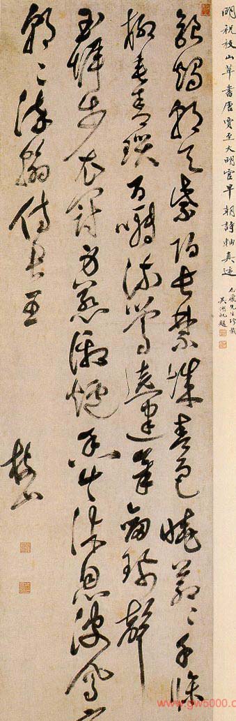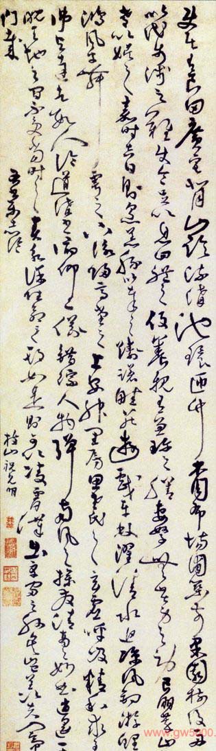 祝允明《草书杜甫诗轴》绢本 73×32cm 山西省博物馆藏