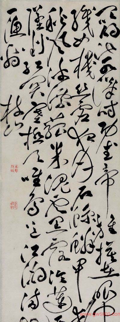 草书轴 纸本。 纵158厘米、横41.5厘米。