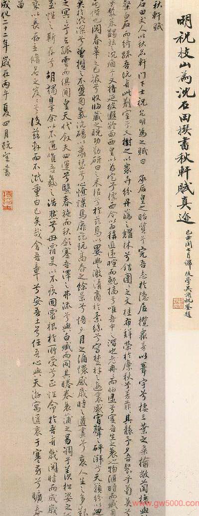 钤印:枝指道人、祝允明印