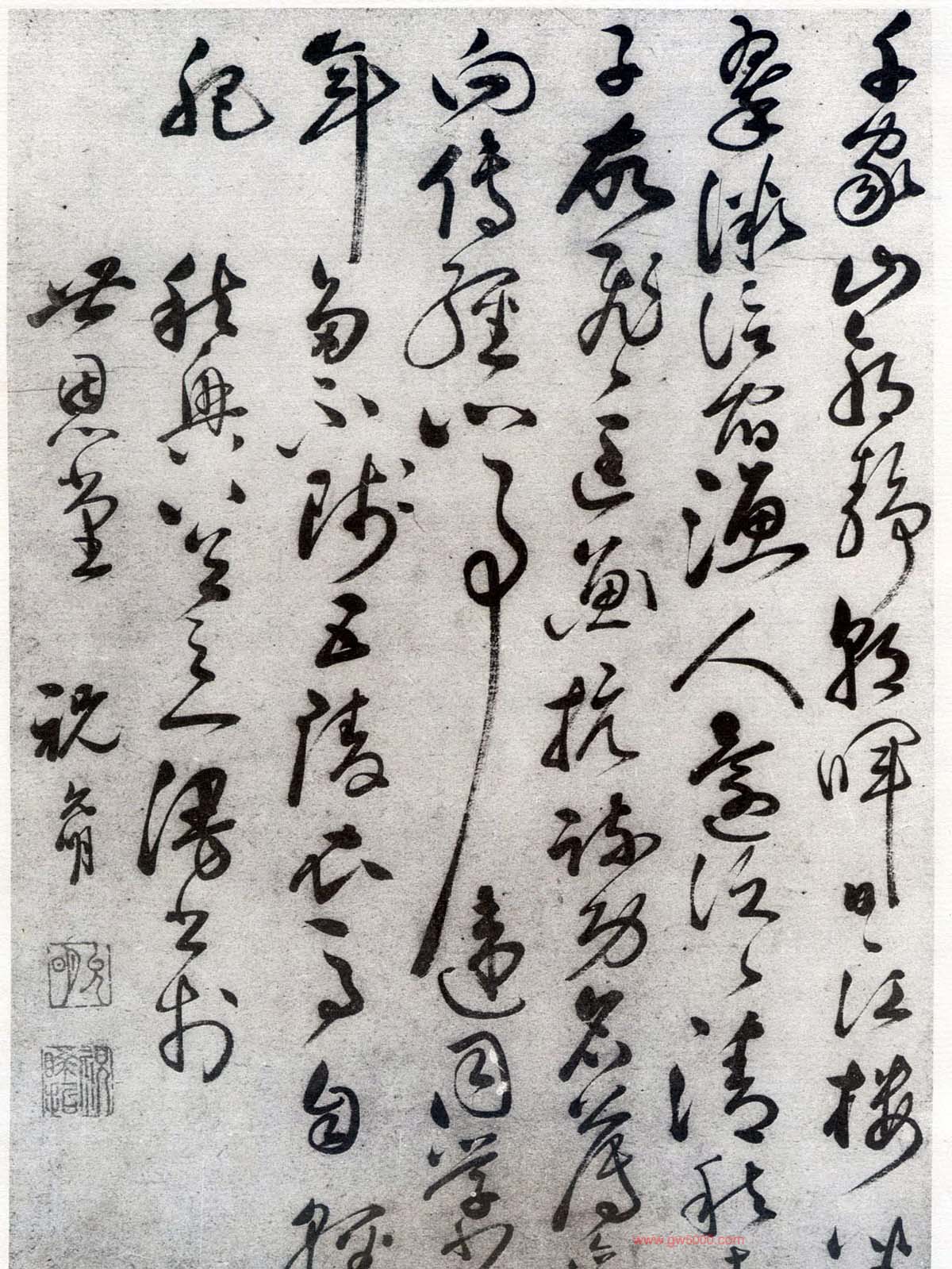 此件草书气度不凡,极具节奏感的用笔以及蕴含其中的无尽的激情,笔势雄健,情浓势足,风骨烂漫。