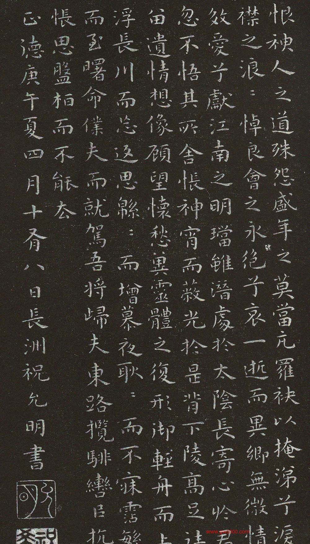 祝允明小楷书法拓本《洛神赋》,明武宗正德五年庚午(1510年),祝希哲五十一岁书。