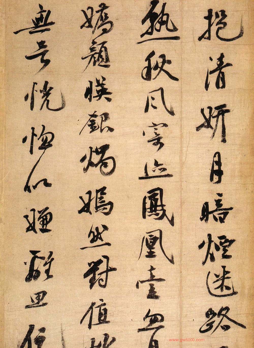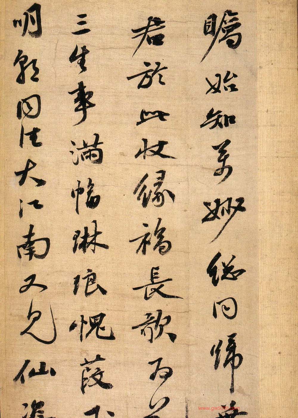 祝允明行书墨迹欣赏《琼林玉树图歌》,绫本册页,纵34厘米,横22.5厘米,戚叔玉藏。此歌乃枝山38岁时在秦淮京舍为《琼林玉树》一图所题。其书行中夹草,遒古萧远,结字纵逸,倾侧跌宕得自山谷,酣畅流动,匀称妍妙,凝厚劲健如“绵里裹铁”,实出于东坡。