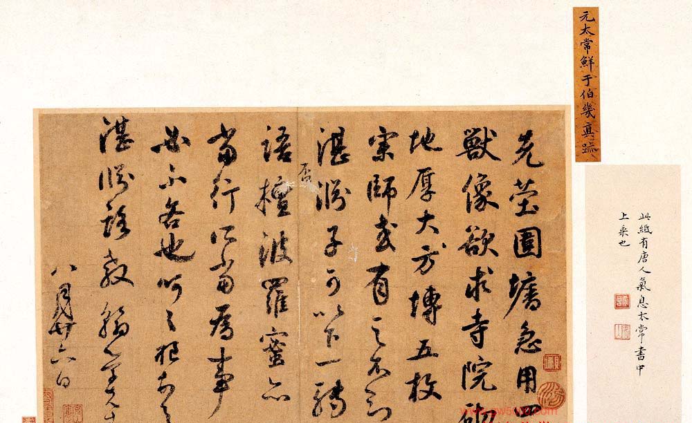 按语:伯机书健拔跌荡气宇轩昂,赵孟俯甚重之,每以二纸易其一书。然二人皆元时一代巨擘,而赵氏的谦逊敦厚,尤可为学者师表。性情刻薄,胸不容人,笔底必落小家路数。此札前三行严正朴茂,书与情合,此后渐趋率放,畅达中有沉郁之致,是神韵功力兼长的佳作。