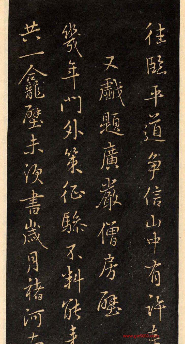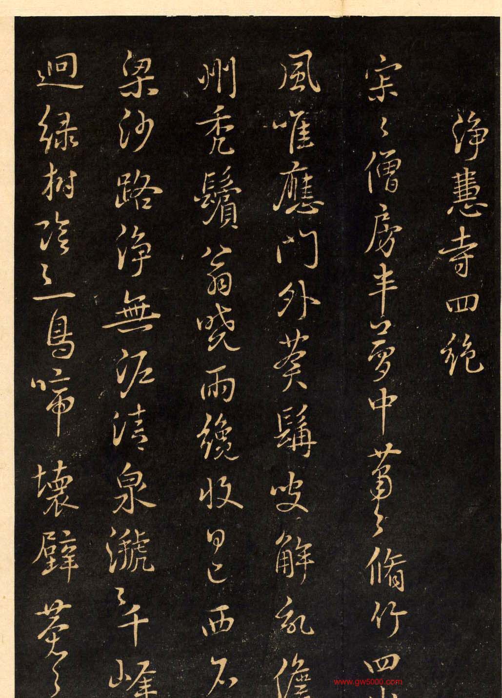 鲜于枢行草书法欣赏《净慧寺四绝》,来源明代墨稼庵选帖第六卷,书法图片四张。