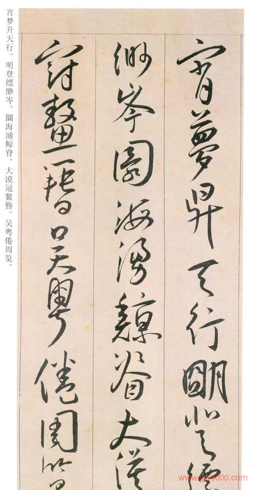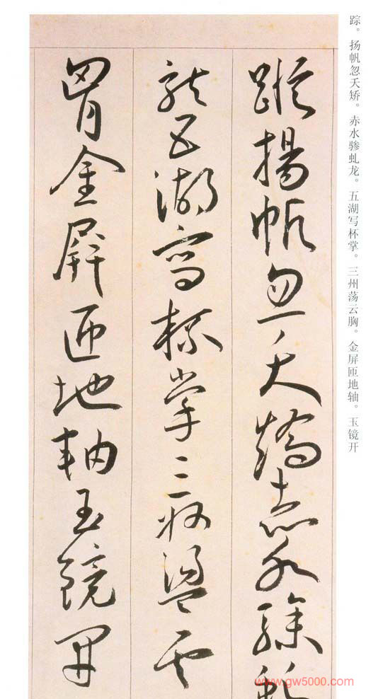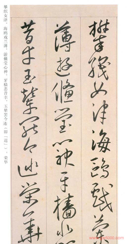 王宠书法《草书自书游包山诗手卷》,砑花笺,尺寸为横382厘米,纵29厘米。天津艺术博物院藏。