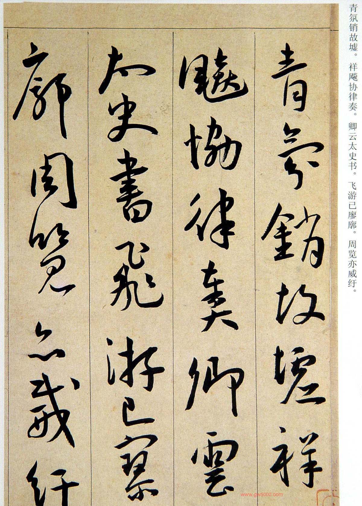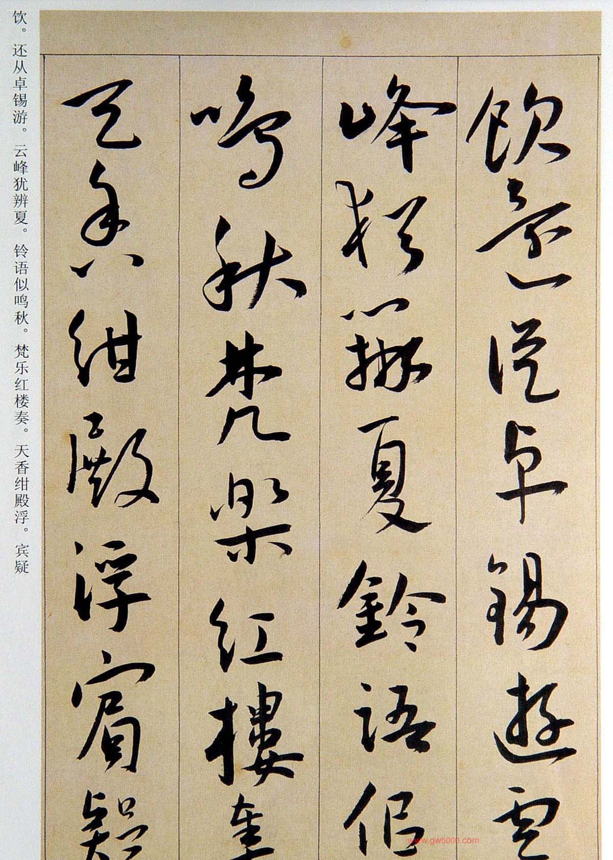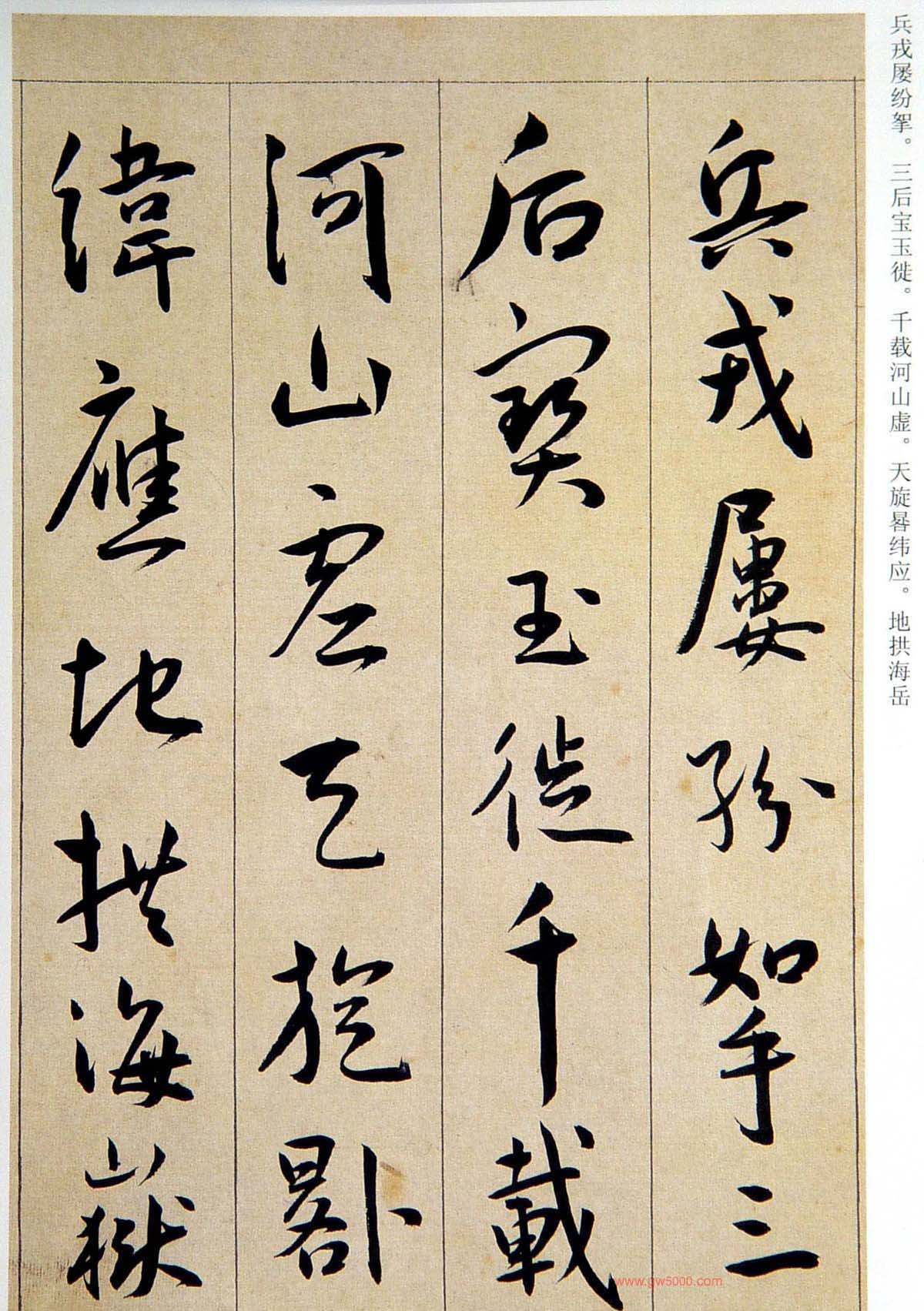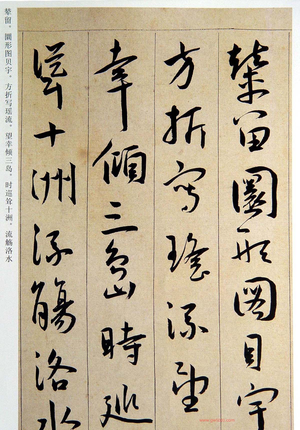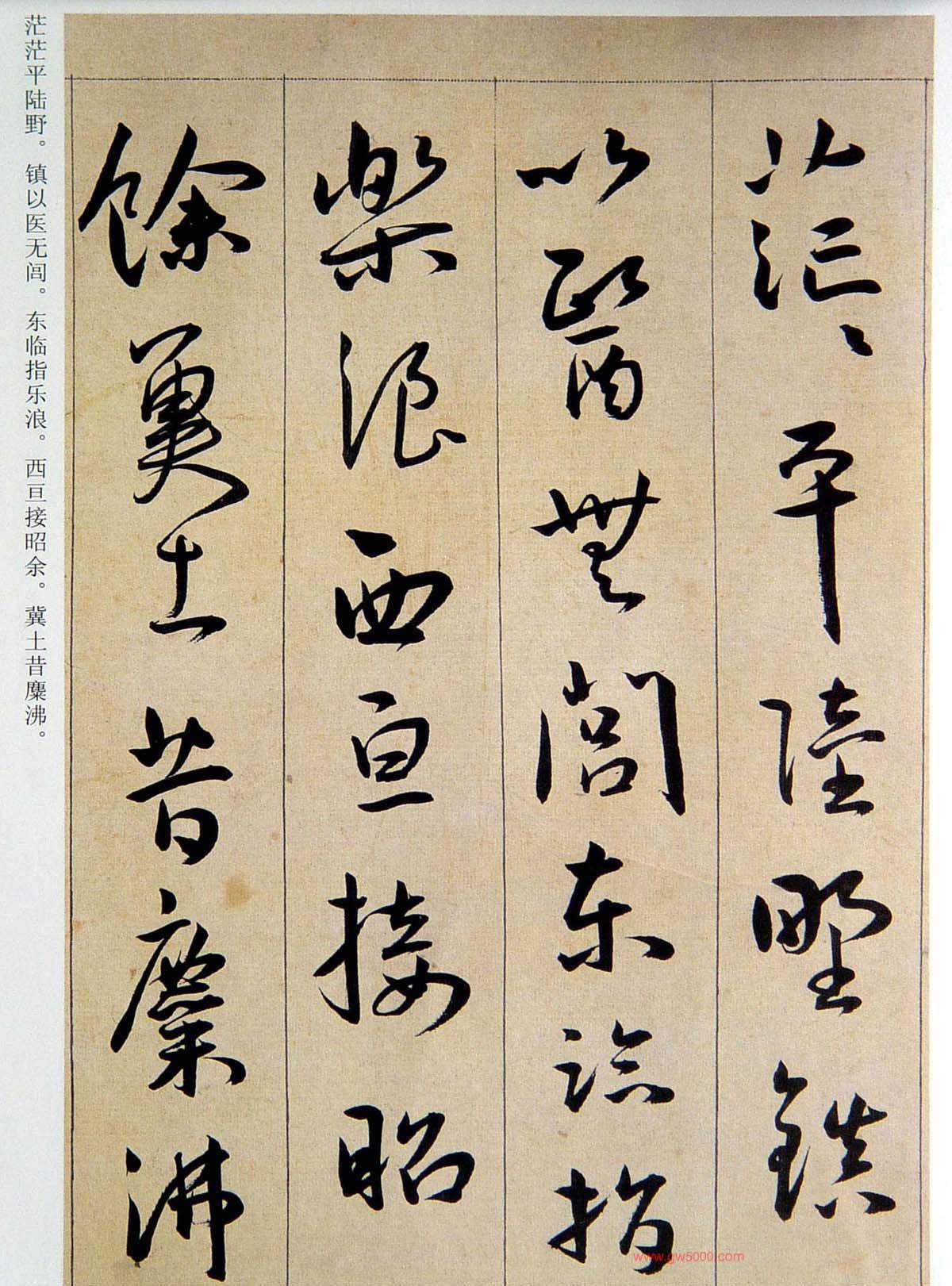 《西苑诗》,取法献之、虞世南笔意,但善于掺拙,做到了巧而不媚,流畅而不浮滑;用笔清劲秀雅,温润含蓄,不激不厉,技巧动作的表达非常细腻、精巧,变化极其微妙;结体安排精巧流走,法度、情性俱在,有些地方还流露章草遗韵,更显高古蕴藉;整个气息落拓不羁、遒劲萧疏,在沉静、收敛之中反而更具一种内在的张力。诚如清黎惟敬所赞颂的那样:“晋人真迹,世所罕见。所传者,仿书耳。诸体混淆,若出一手,不辨其为谁也。近世吴人王履古氏独能追踪大令,萧散俊逸,复出流辈,虽不见晋人书,知其为绝艺也。”