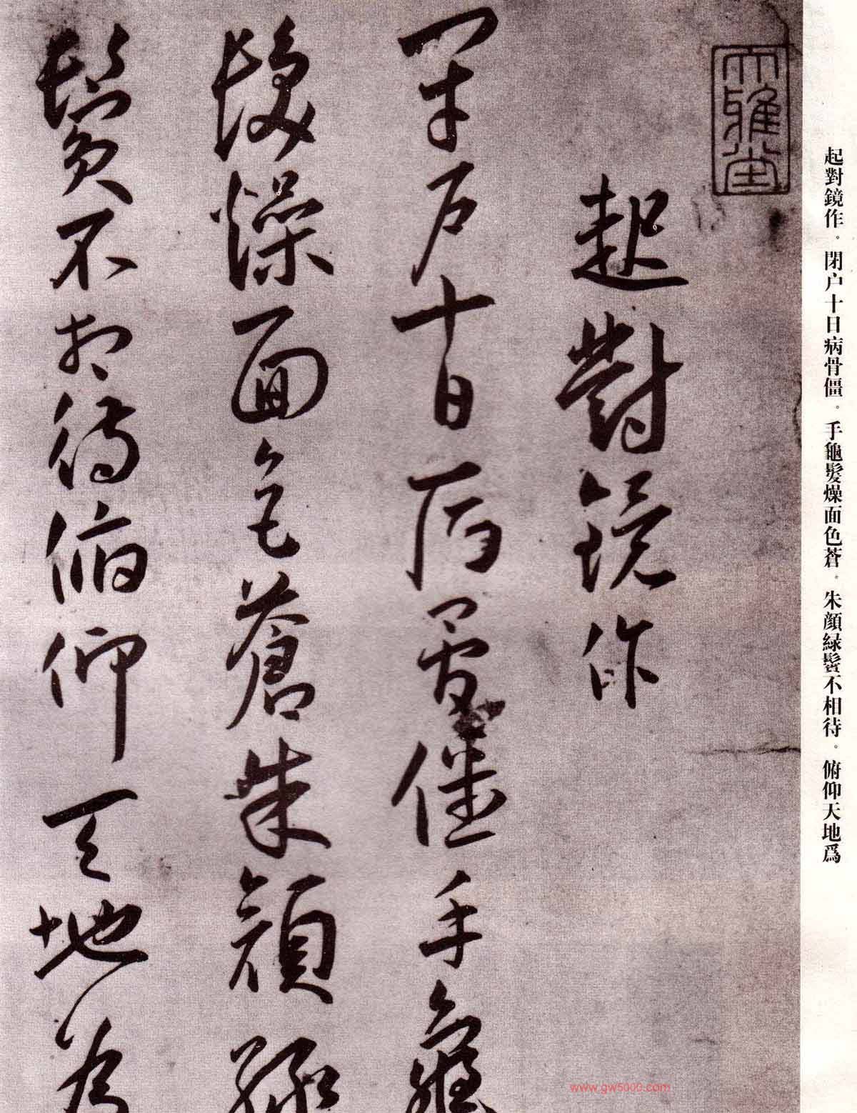王宠(1494-1533),字履仁、履吉,号雅宜山人,吴县(苏州)人。为邑诸生,贡入太学。王宠博学多才,工篆刻,善山水、花鸟,他的诗文在当时声誉很高,而尤以书名噪一时,书善小楷,行草尤为精妙。王宠行草之所以与祝允明比较接近,是因为他不仅临摹祝允明,而且与祝氏一样,也取法李怀琳。为明代中叶著名的书法家。