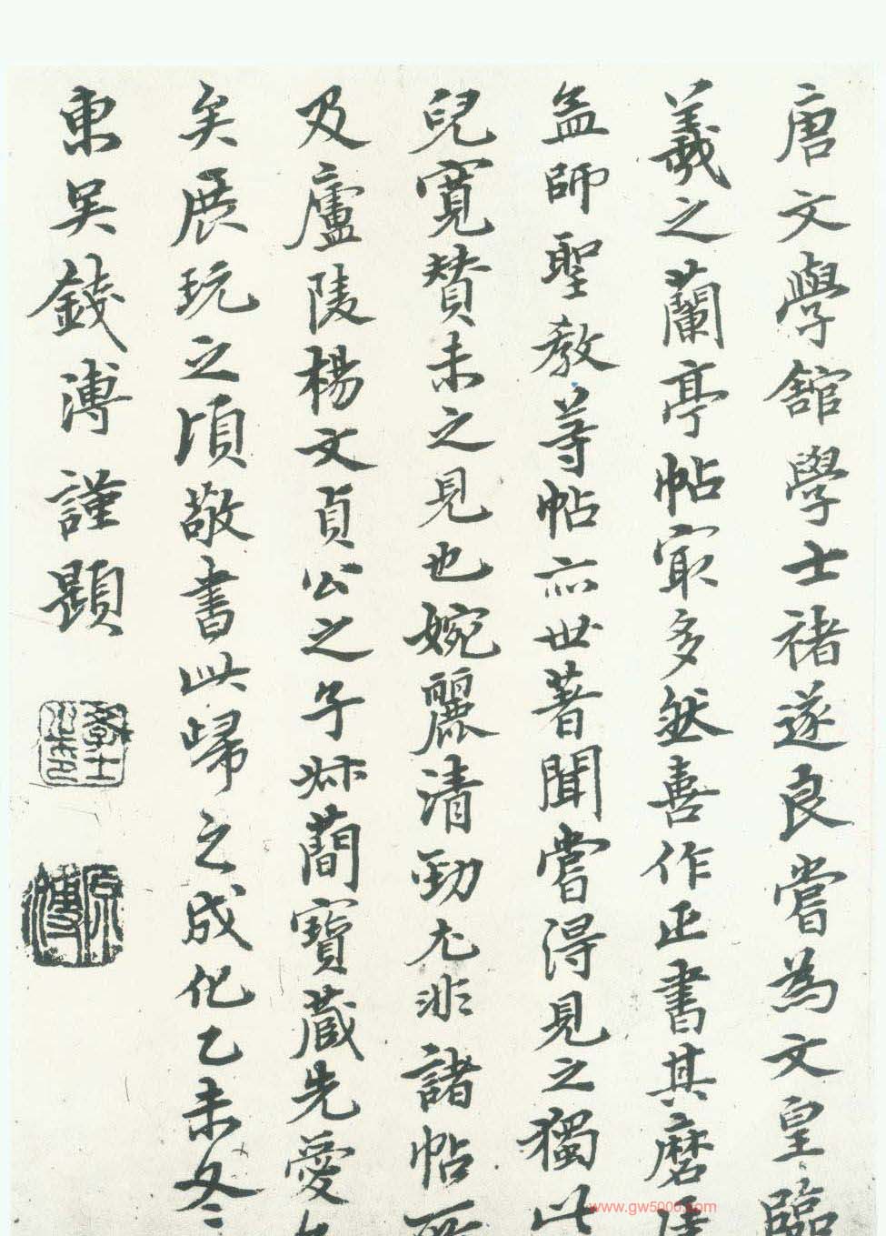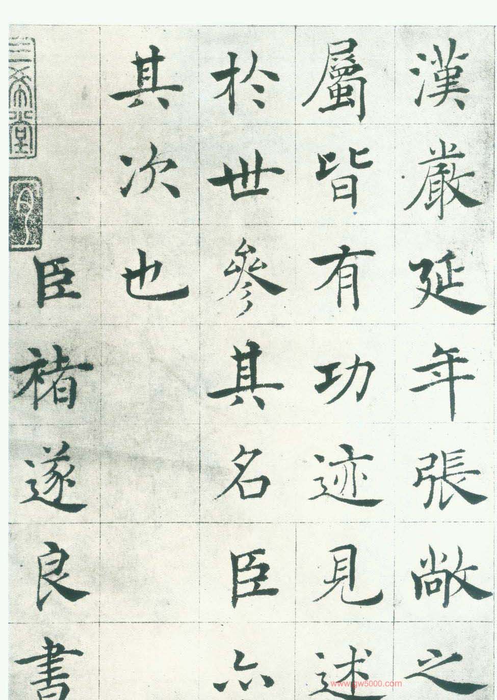《倪宽赞》传为唐代褚遂良楷书法帖。《石渠宝笈》载:帖高七寸七分,横五尺二寸七分,字共五十行,满行七字。据赵孟坚跋云为褚遂良晚年之作。卷后有赵孟坚、邓文原、柳贯、杨士奇、钱溥等人跋记。赵氏跋称:“容夷婉畅,如得道之士,世尘不能一毫婴之。”而明代詹景风《玄览编》则以为:“燥而不润乏天趣,笔似清劲而实单弱。”明代张丑《清河书画舫》称:“褚河南《倪宽赞》是宋世临本,后有赵子固等七跋却真。”有影印本行世。