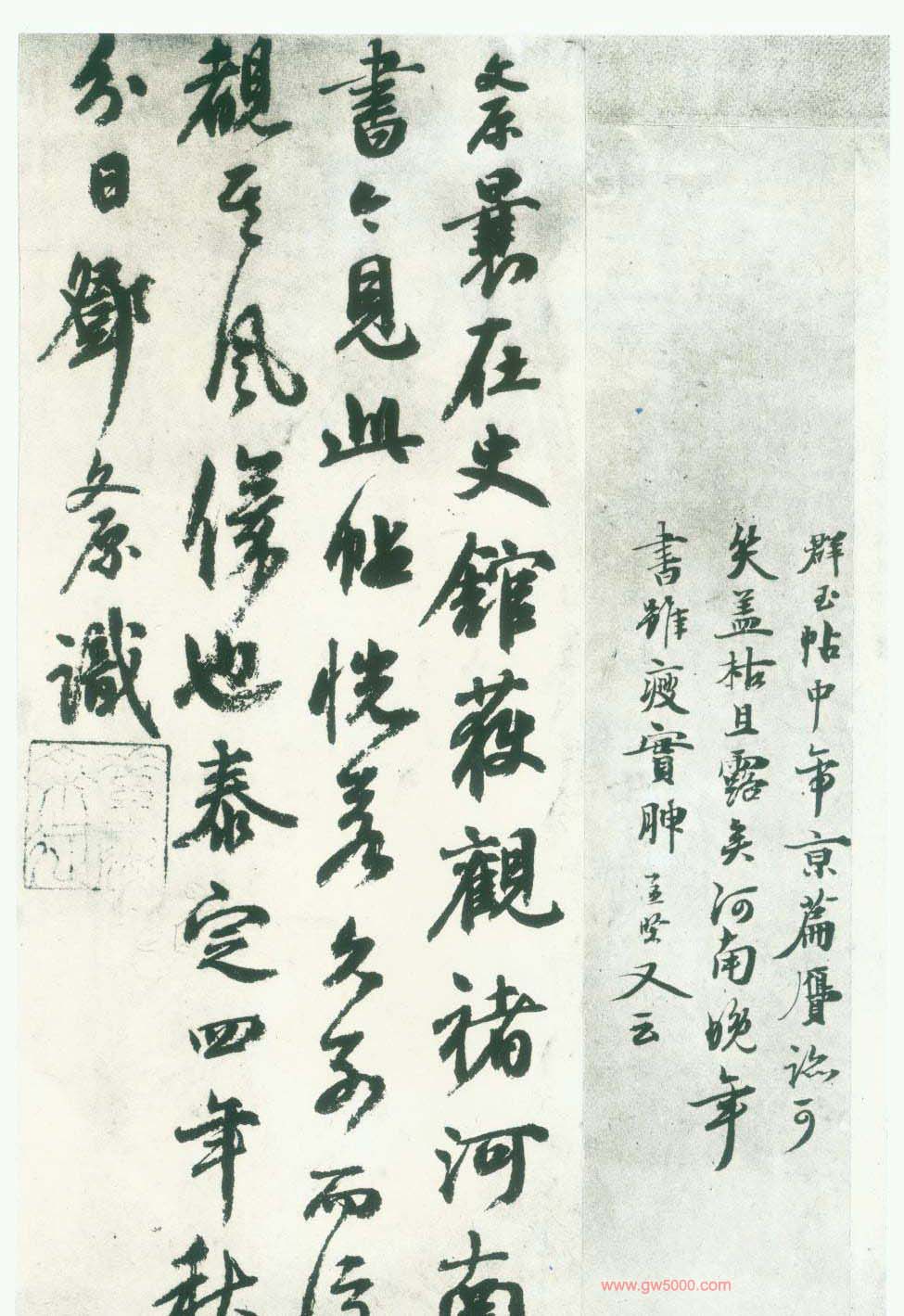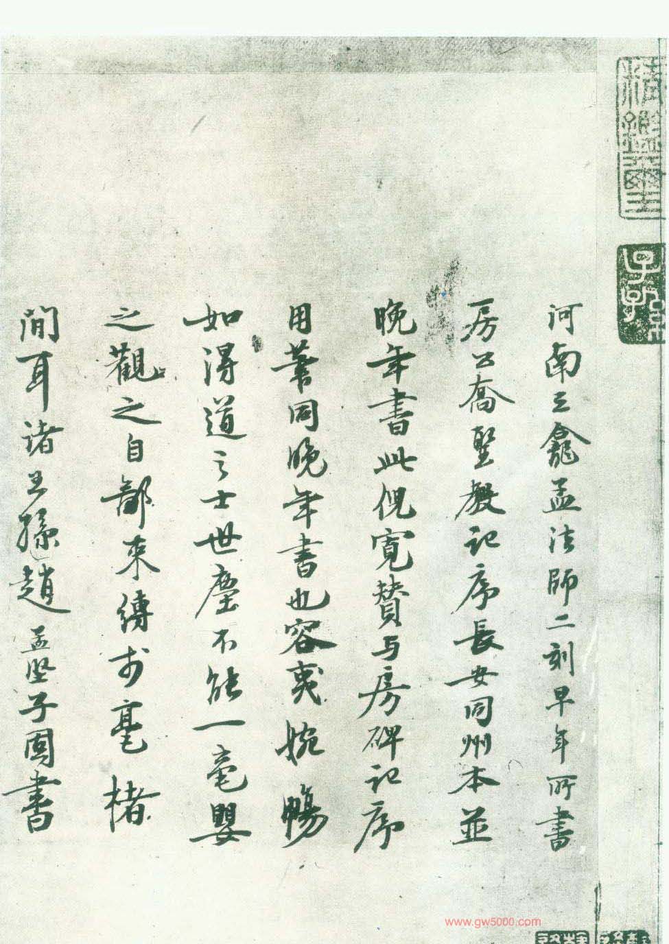 本卷字的笔划疏瘦,运笔过程,一划之间,有粗有细,字的姿态,有种翩翩自得,秀丽美妙,使人如面对一位一尘不染,清净绝俗的高士。