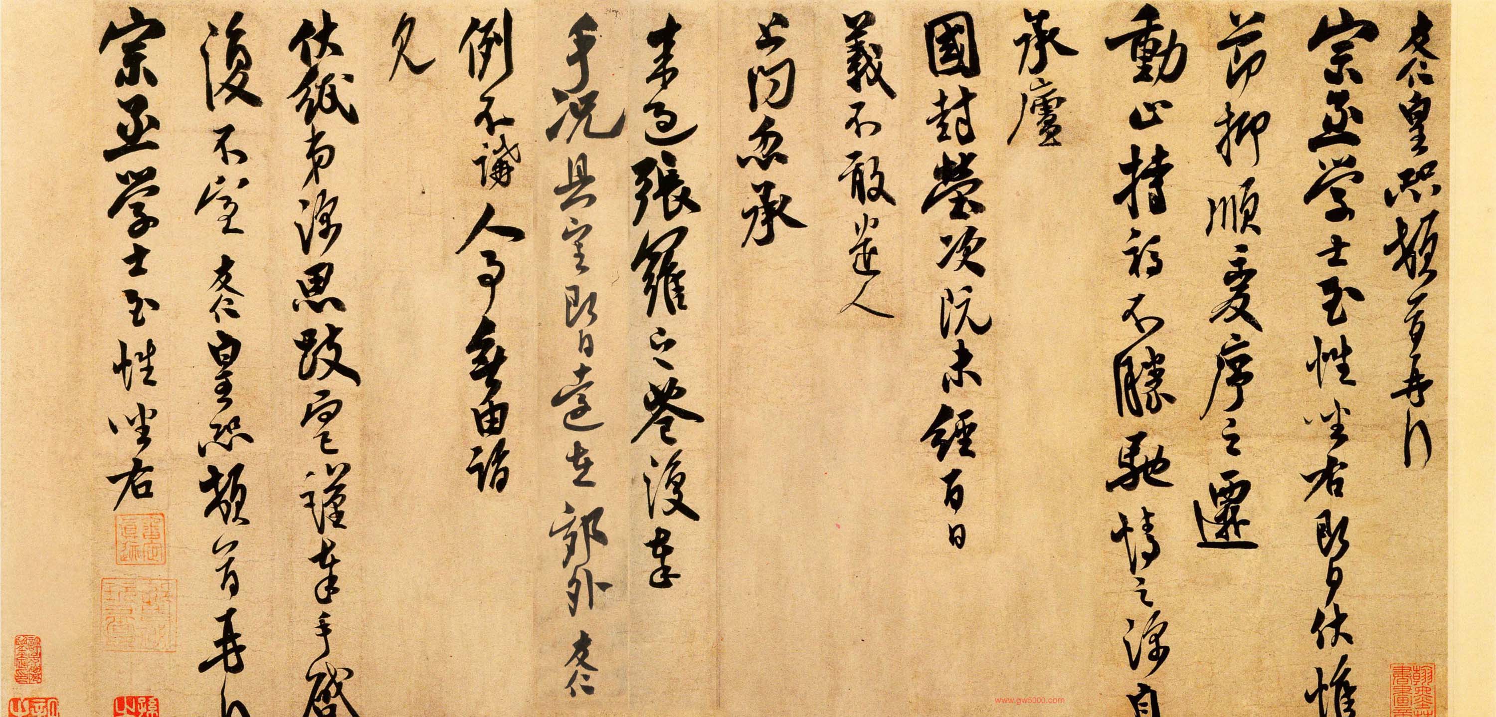 米友仁《动止持福帖》,纸本,33.1×59.6cm。北京故宫博物院藏。