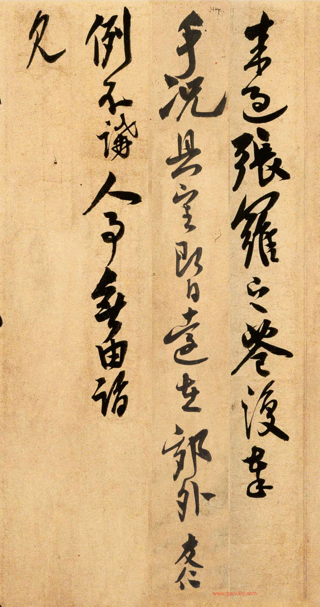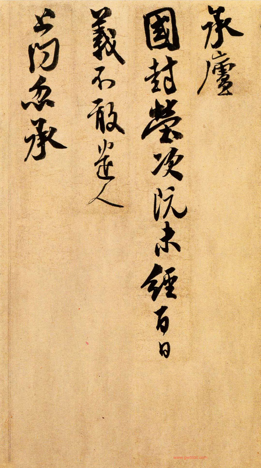 《动止持福帖》又称《至性帖》,行书尺牍十五行,蓑衣裱,因经割裂而或有缺字所以文句有不甚通顺处。帖后有元人何谦光跋,称之为“笔底龙蛇飞动,纨素间虽颜筋柳骨未有能出其右者。”虽系赞美之辞而实不得要领,反不如《书史会要》所评:“作斜弩之笔,一字皆成横欹之势。”笔法颇类其父,注重结态造势,以险求夷,欹侧生姿。但也有自己的特点,较之老米书笔笔压纸、笔笔离纸的沉着痛快,小米书没有那般笔势凌厉,而是笔画柔和,结体收敛,显得有些紧迫、局促。