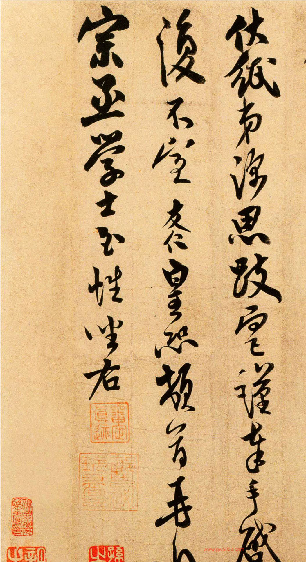 鉴藏印记:元代“郭氏秘玩之印”(朱文)、“审定真迹”(朱文),明代“孙琦之印”、“翰墨林书画章”(朱文)等。历代著录:《式古堂书画汇考》、《大观录》。