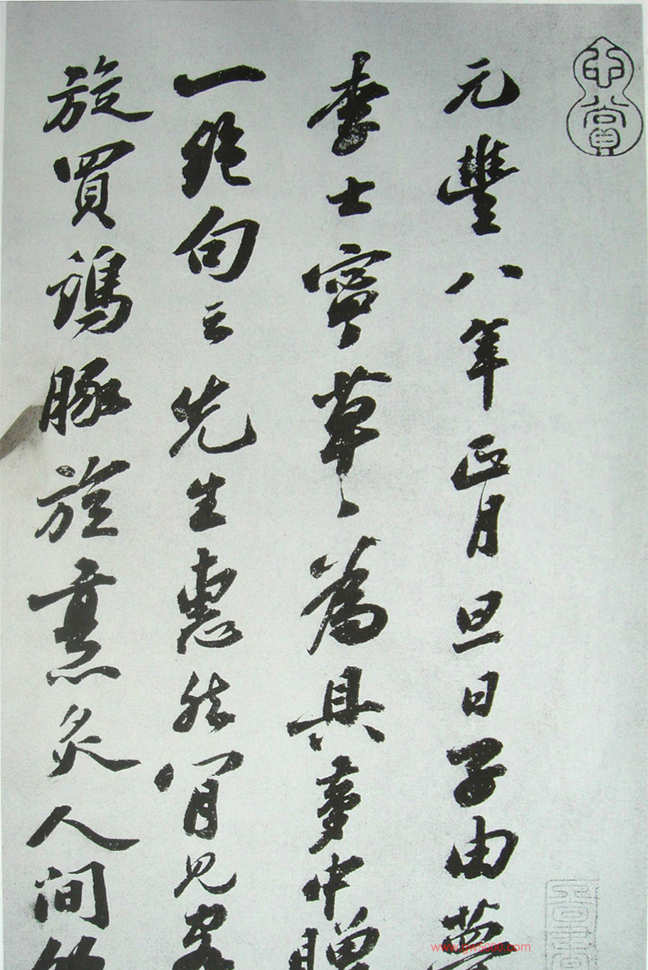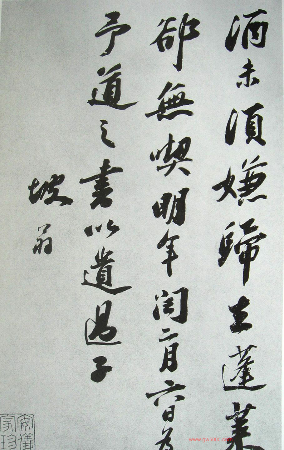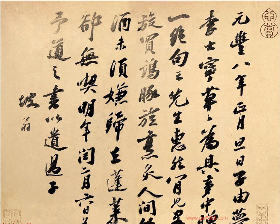 释文:元丰八年正月旦日。子由梦李士宁草草为具。梦中赠一绝句云。先生惠然肯见客。旋买鸡豚旋烹炙。人间饮酒未须嫌。归去蓬莱却无吃。明年闰二月六日为予道之。书以遗过子。坡翁。